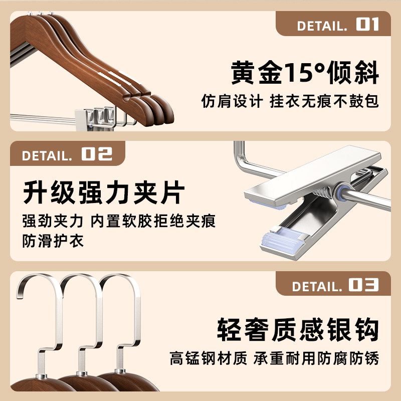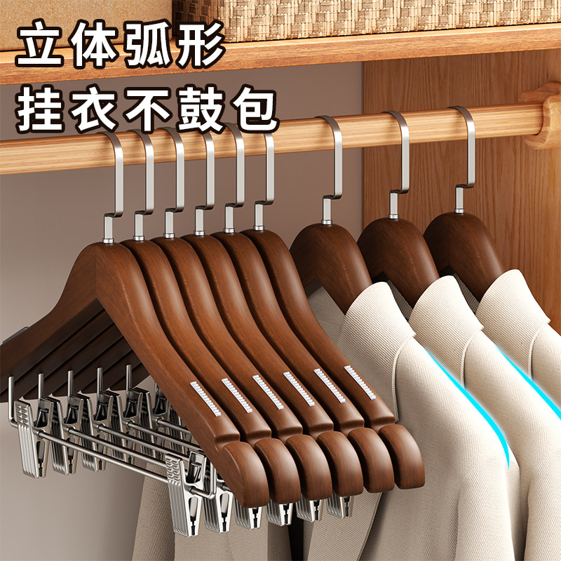 天无痕榉木衣架家用挂衣防滑高端衣服挂架子衣撑晾衣架宽肩衣柜结实
