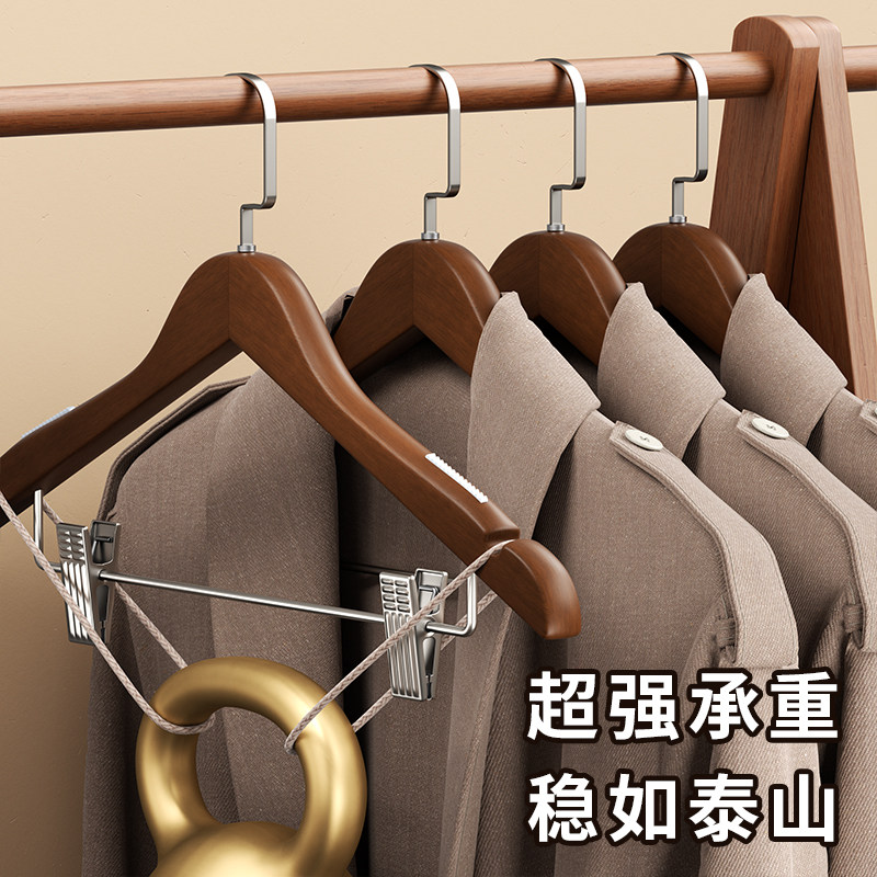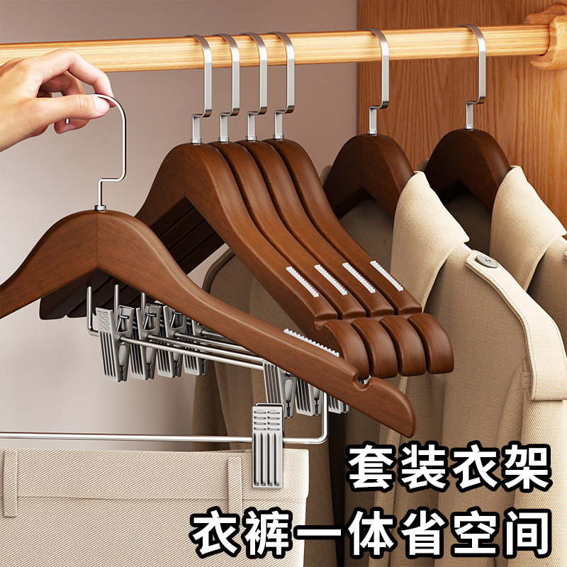 天猫实木带夹子衣架酒店客房专用套装一体家用木质防滑衣撑服装店裤架