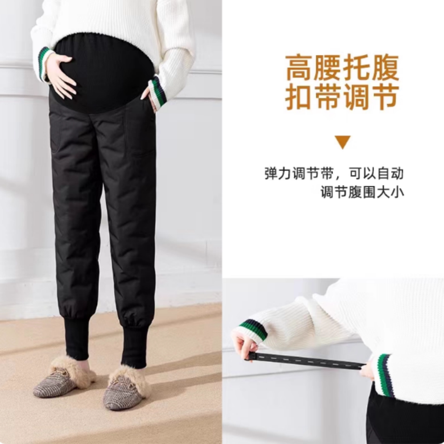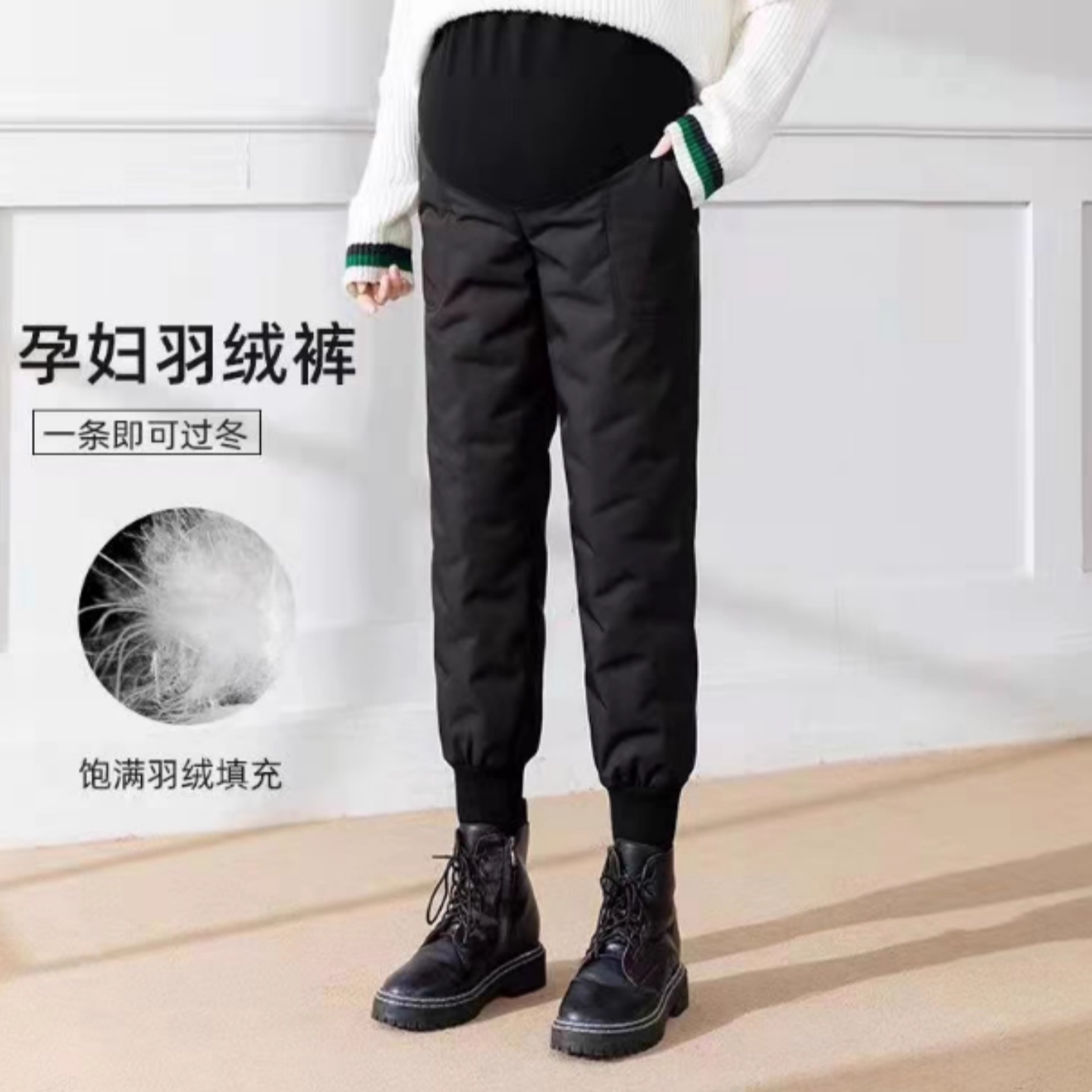 淘宝孕妇羽绒裤冬季外穿加绒加厚宽松休闲保暖长裤东北白鸭绒棉裤冬装