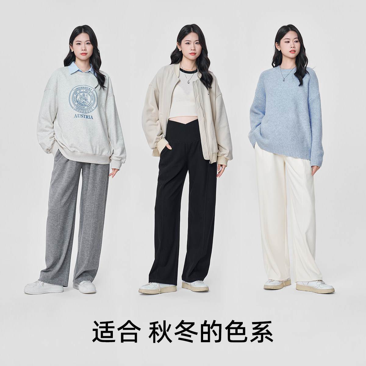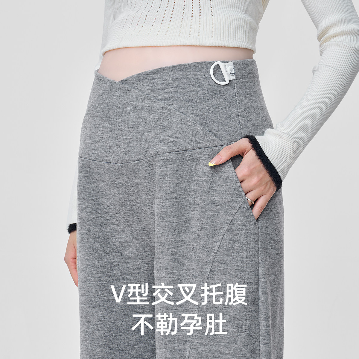 淘孕妇灰色加绒裤子秋冬季垂感显瘦直筒窄版阔腿裤加厚运动卫裤长裤