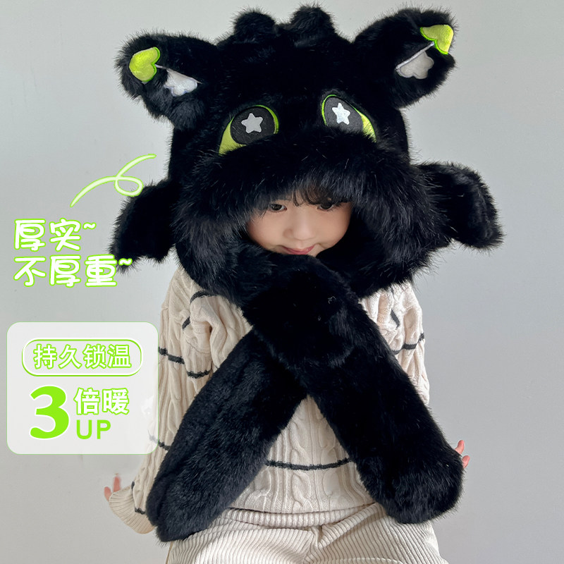 淘宝儿童帽子围巾一体无牙仔2025新款冬季围脖女男孩捏耳朵会动的冬天