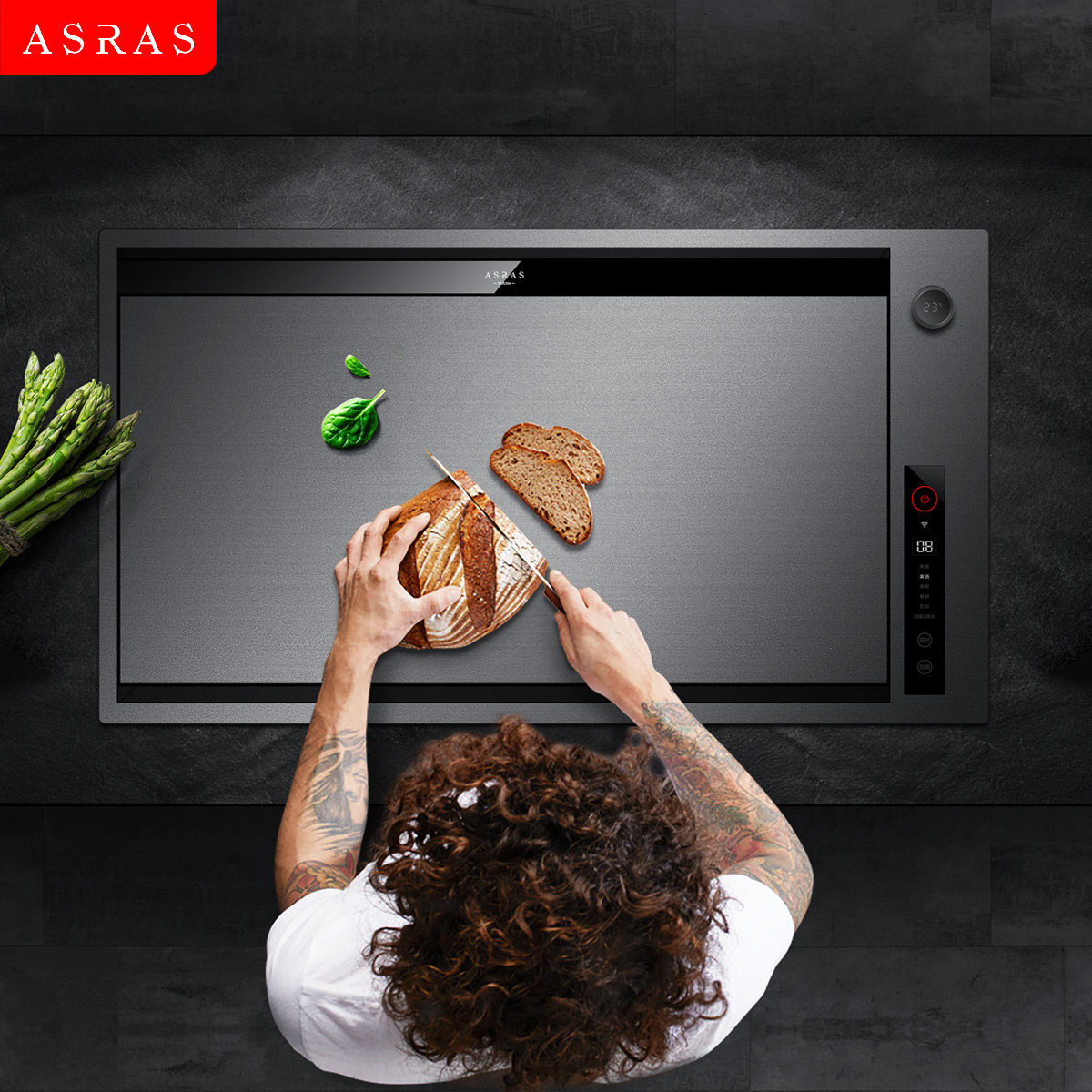 阿萨斯智能果蔬清洗水槽采用先进水触媒净化技术,结合纳米材料工艺,实现高效去农残、杀菌消毒,保障食材洁净安全。大双槽设计搭配隐形盖板,空间利用更灵活,盖板闭合后形成平整操作台面,美观实用。304不锈钢材质坚固耐用,抗腐蚀易清洁,表面细腻拉丝工艺提升厨房质感。智能触控面板操作便捷,支持多种清洗模式,满足果蔬、肉类等不同净化需求。水槽边缘圆润防刮,排水系统优化防堵防臭,静音设计提升使用体验。集净化、清洗、收纳于一体,是现代健康厨房的理想之选。