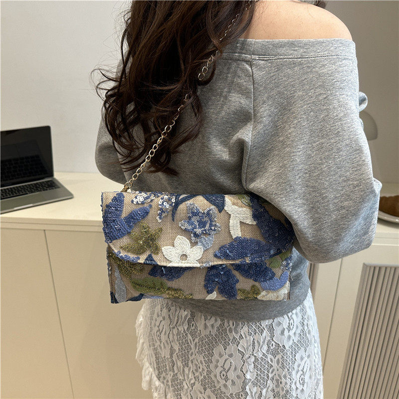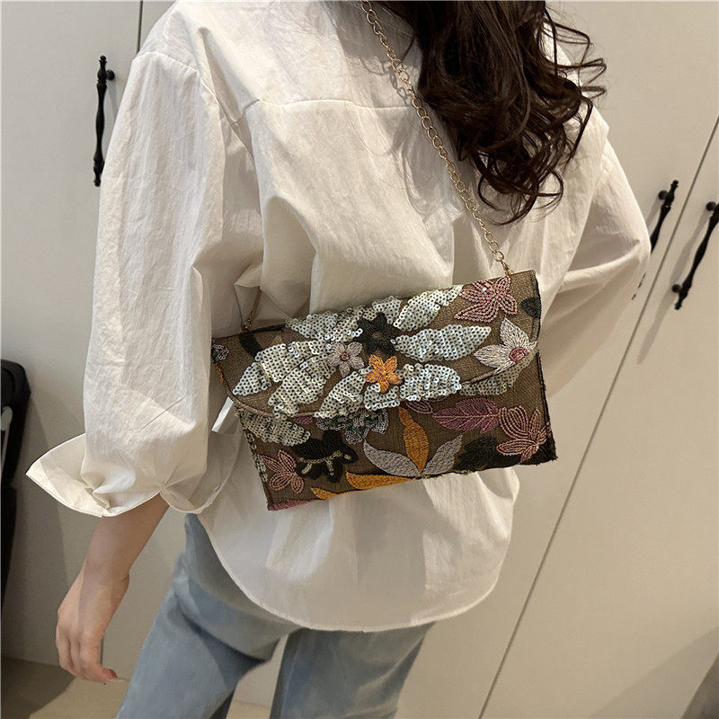 淘宝斜挎包信封包2025夏季新款时尚洋气亮片刺绣花卉小众女士手拿包