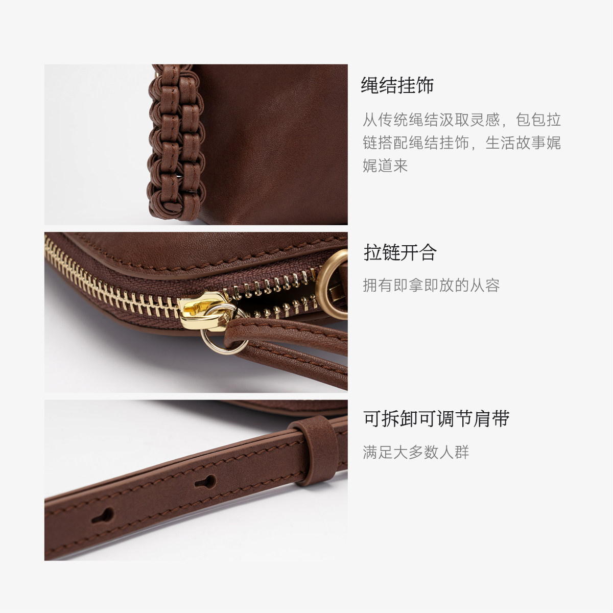 BAMPO半坡穗穗新款贝壳包,采用优质头层植鞣牛皮打造,质感细腻,自然纹理彰显高级品味。包型小巧精致,贝壳造型优雅独特,兼具时尚与实用性。内置合理分层,轻松容纳手机、卡片、口红等日常 essentials,满足春日出行需求。支持手拿与斜挎两种背法,搭配可调节链条,轻松应对不同场合。植鞣皮随使用时间推移更显温润光泽,越用越有味道。无论是日常通勤还是约会聚会,这款小包都能为你的造型增添亮点,是春日不可或缺的百搭单品。BAMPO以匠心工艺诠释简约美学,展现现代女性的优雅与自信。