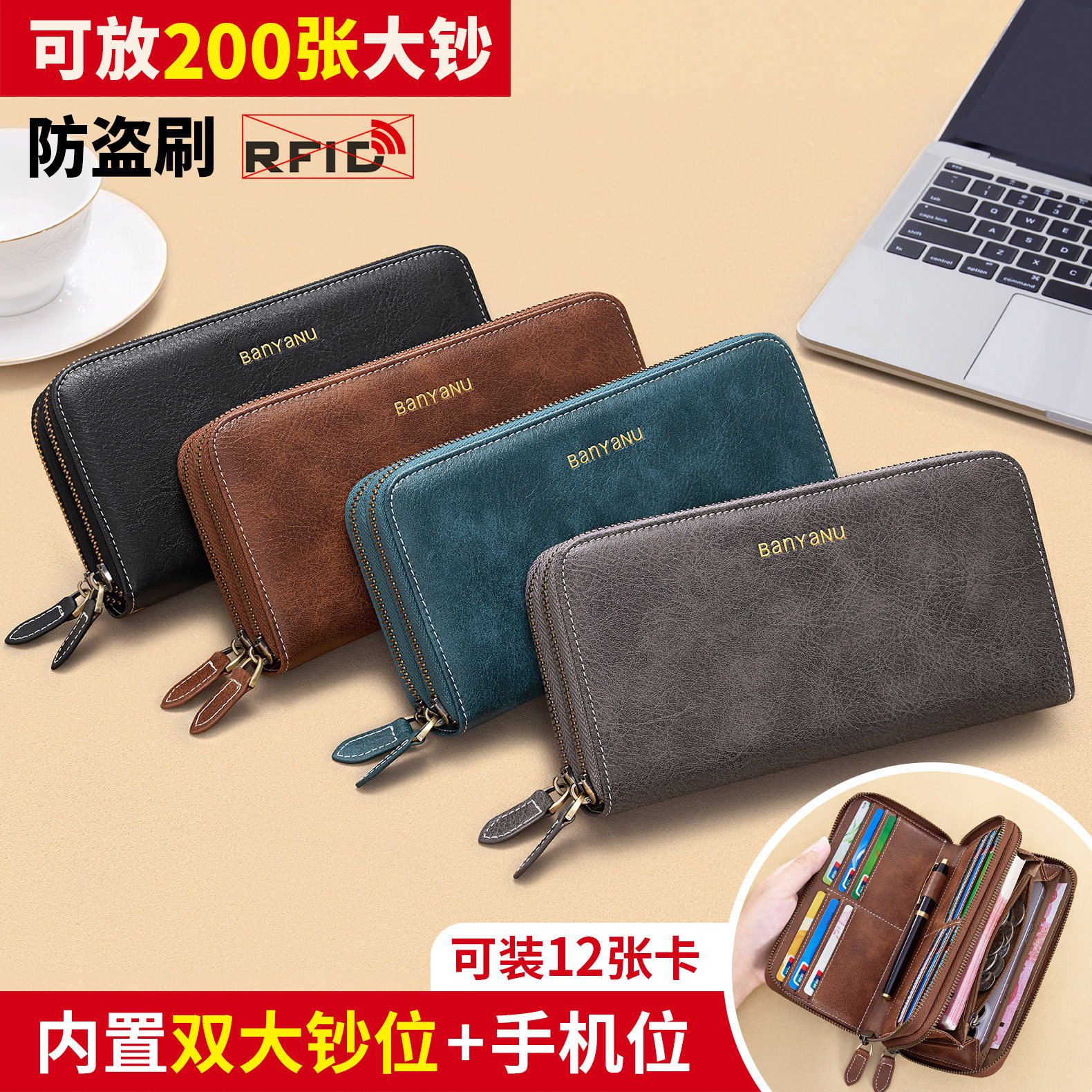 淘班亚奴正品2025新款真皮大容量钱包男长款头层牛皮男款拉链手拿包