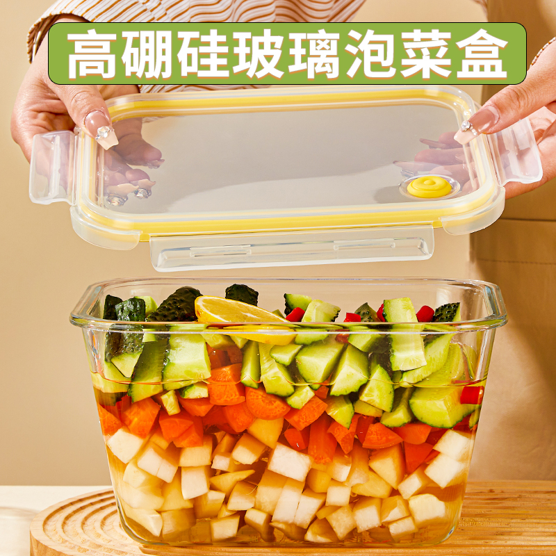 淘宝大容量玻璃保鲜盒食品级冰箱专用泡菜罐子腌咸菜水果收纳密封盒