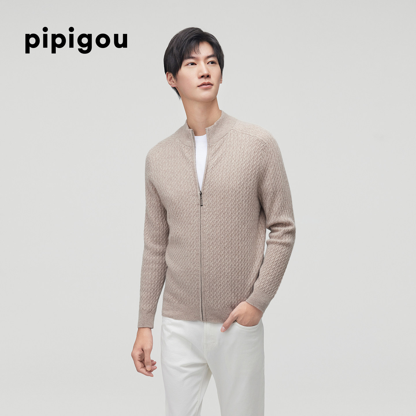 天猫皮皮狗秋冬新款立领复古双股绞花加厚男士拉链羊绒开衫外套