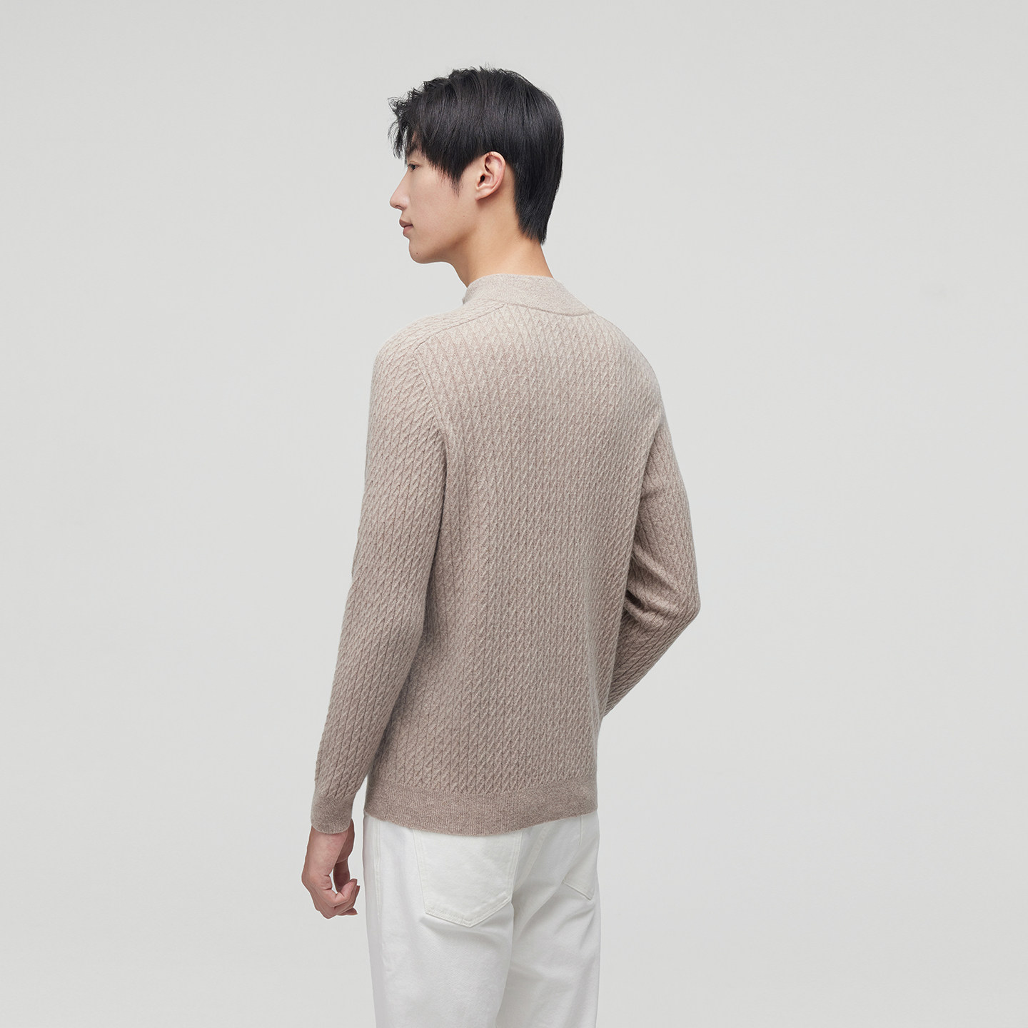 天春竹秋冬新款岛精两股山羊绒无缝半高领绞花长袖男士针织衫羊绒衫