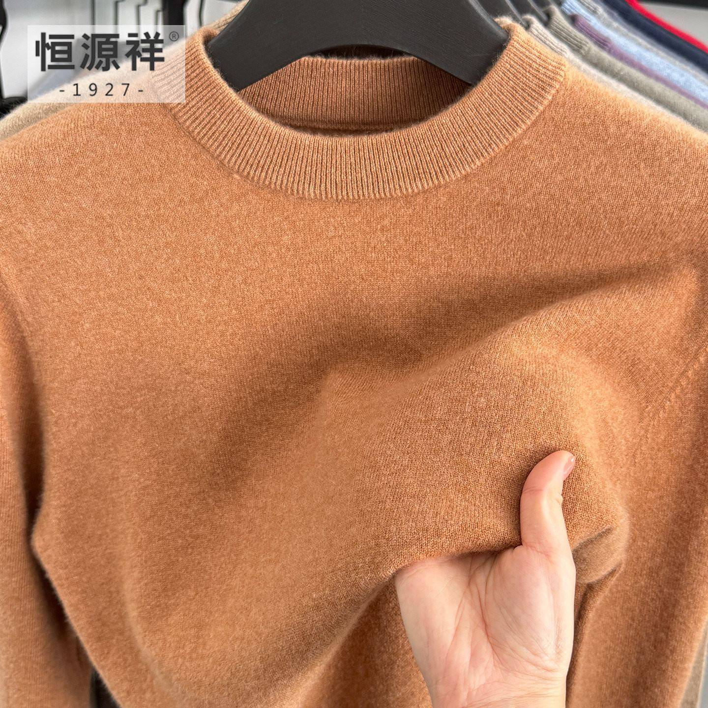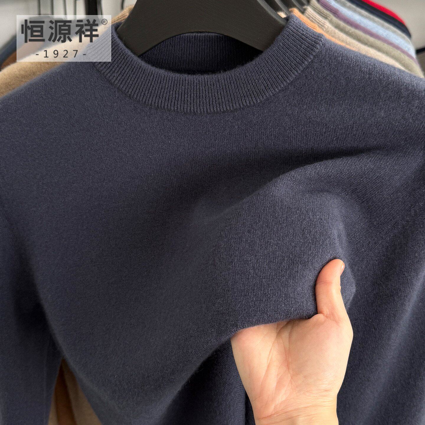 淘宝恒源祥100%纯山羊绒衫男士圆领打底针织衫冬季中年爸爸内搭毛衣