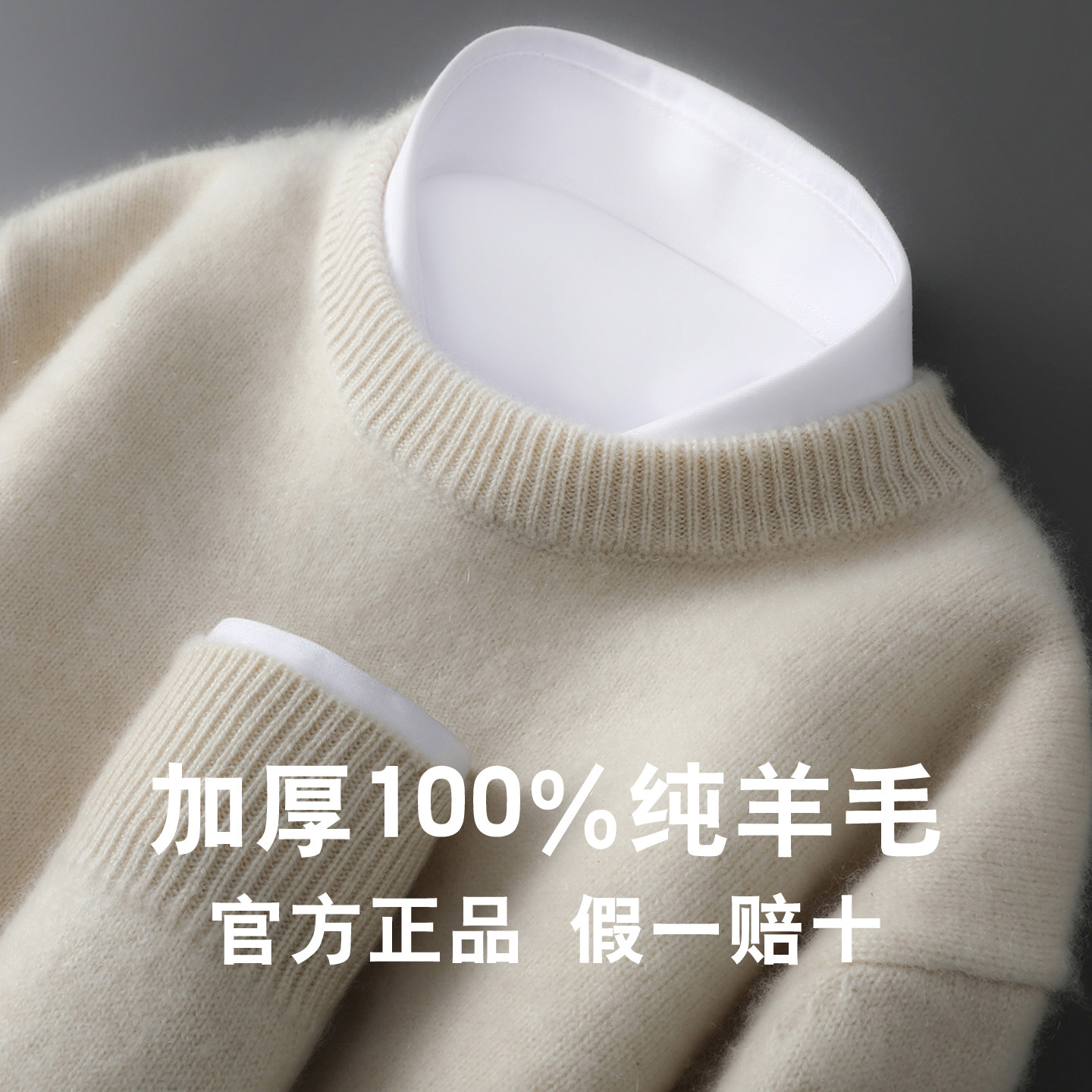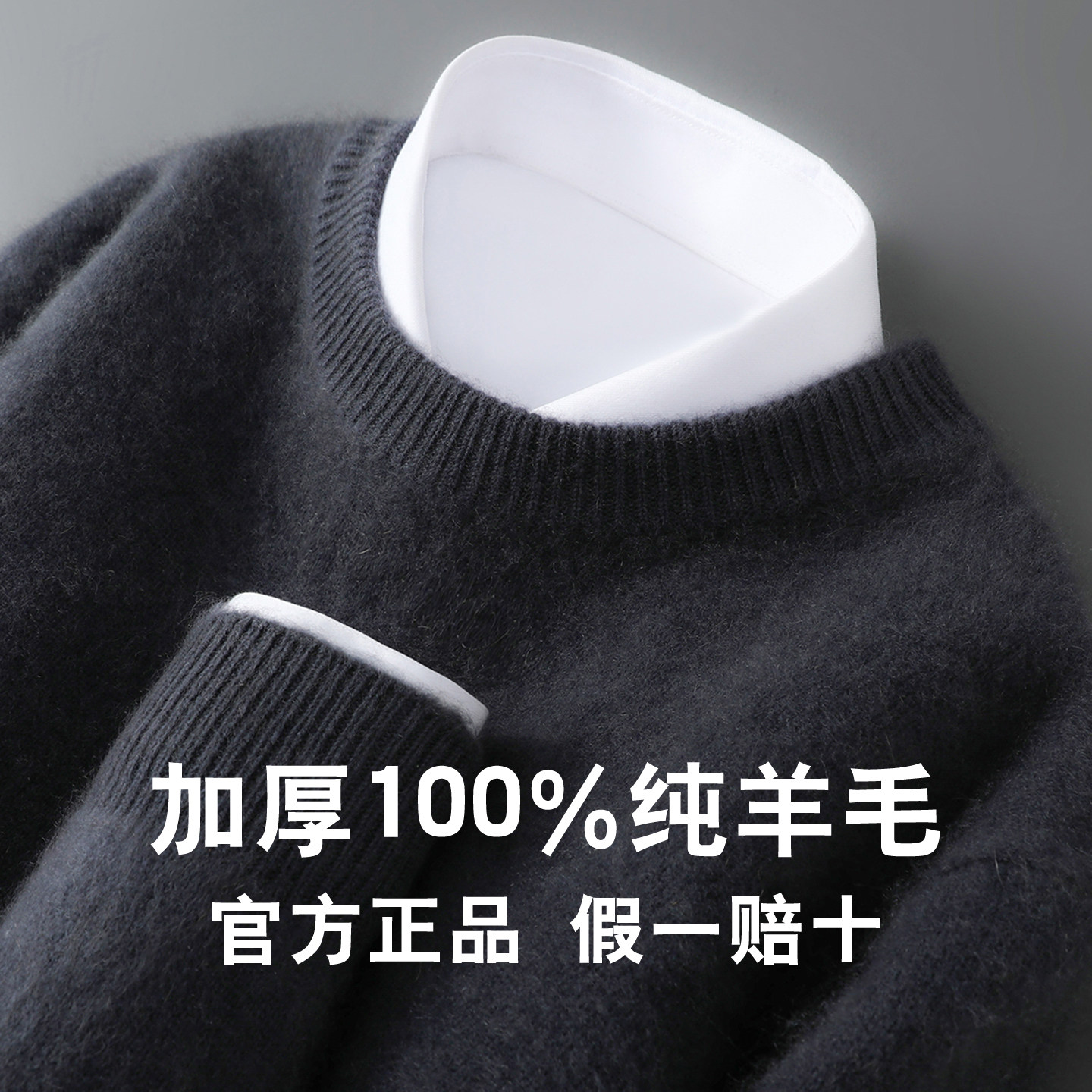 淘宝冬季新款100%纯羊毛衫男圆领双股加厚套头毛衣宽松针织羊绒打底衫