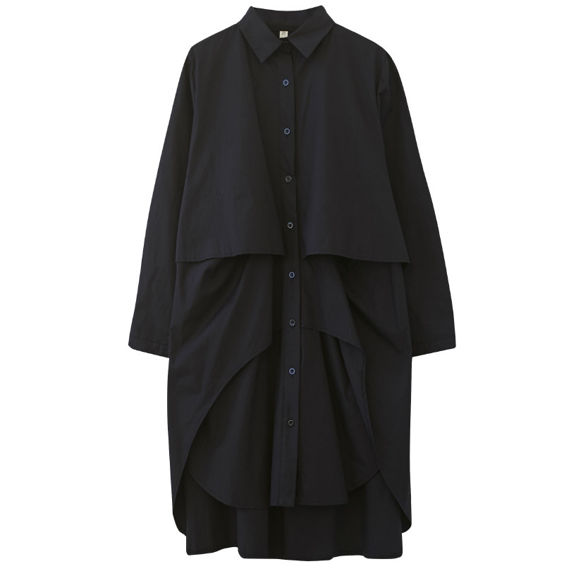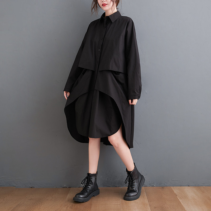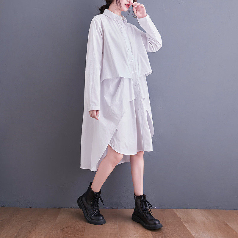 淘宝折扣春装新款中长款衬衫长袖不规则宽松大码显瘦连衣裙净色遮臀