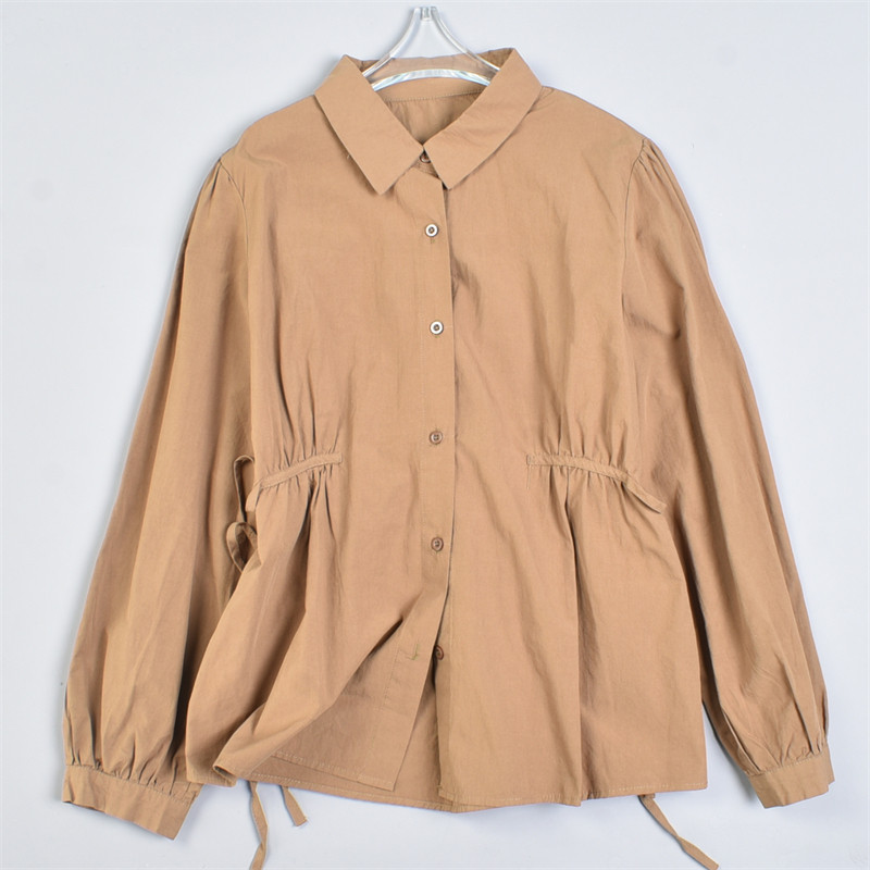 淘宝韩版全棉纯色长袖衬衫女41L82134春夏宽松系带收腰灯笼袖休闲上衣
