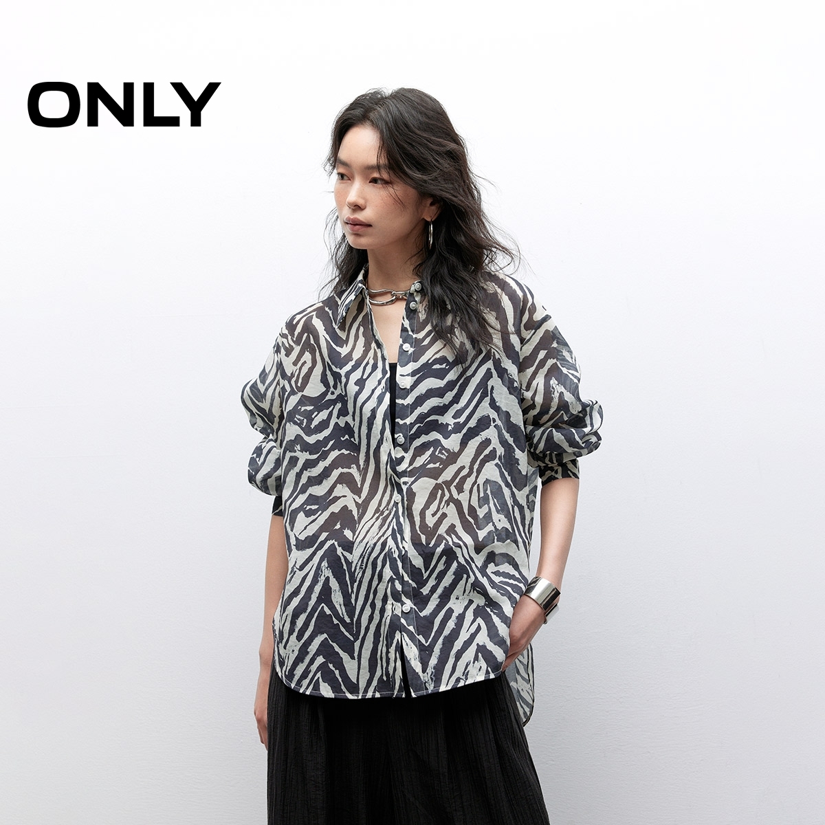 ONLY 2025夏季新款白色长袖衬衫,以简约时尚诠释夏日清爽。采用轻薄透气的优质面料,亲肤舒适,带来全天候自在体验。落肩设计搭配宽松廓形,轻松营造慵懒随性的都市风格。独特的弧形不对称下摆,打破常规剪裁,增添层次与动感,彰显个性品味。纯白色调百搭易穿,可轻松搭配短裤、半身裙或牛仔裤,适合通勤、休闲等多种场合。无论是单穿还是内搭,都能展现女性优雅而不失活力的气质。这款衬衫融合舒适性与设计感,是2025夏季衣橱不可或缺的时尚单品。