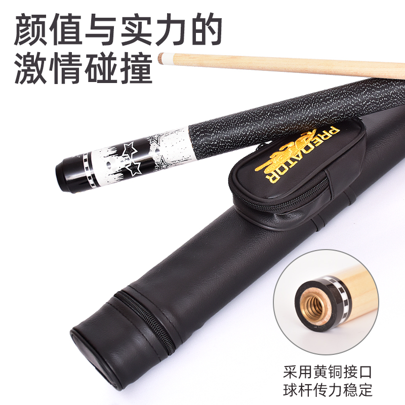 美洲豹台球杆是专业级球具品牌,以其精湛工艺和卓越性能著称。其中式黑8球杆、九球杆及大头球杆,专为中式八球与九球爱好者设计,兼顾力量控制与精准走位。采用优质北美枫木或白蜡木制作前肢,搭配高强度碳素或铝合金后把,确保击球稳定、震动小。大头杆设计增强击球容错率,适合推杆、加塞等复杂技术动作。表面经精细打磨与多层涂装,手感顺滑,外观大气。美洲豹球杆凭借出色的平衡性与耐用性,深受职业选手与台球发烧友青睐,是提升球技的理想选择。