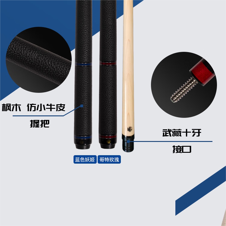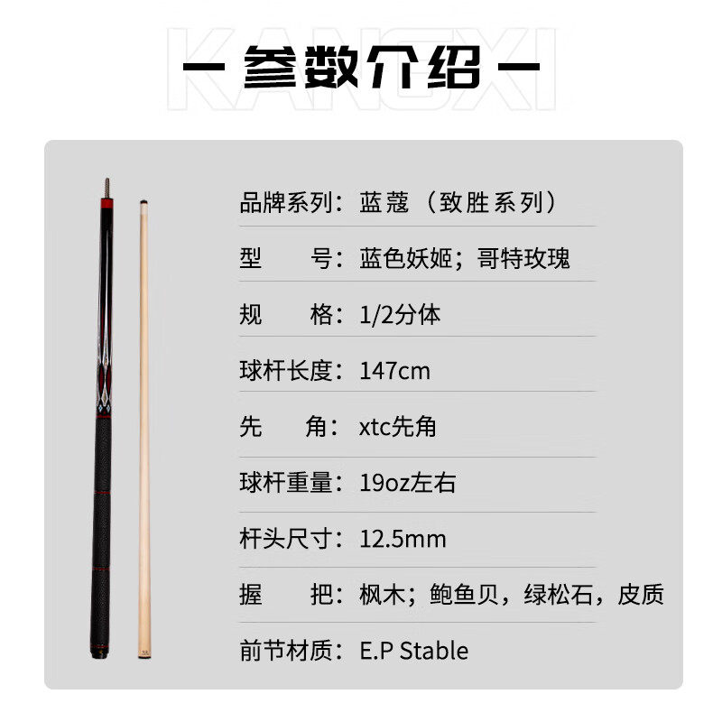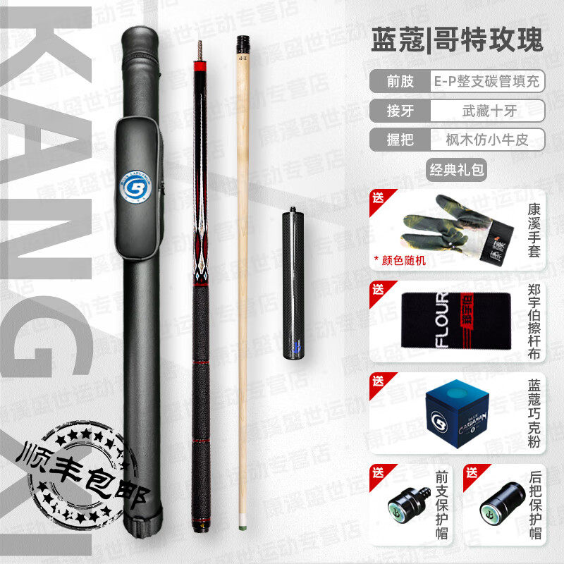 淘宝蓝蔻台球杆致胜蓝色妖姬哥特玫瑰大头杆楚秉杰同款中式黑八分体杆