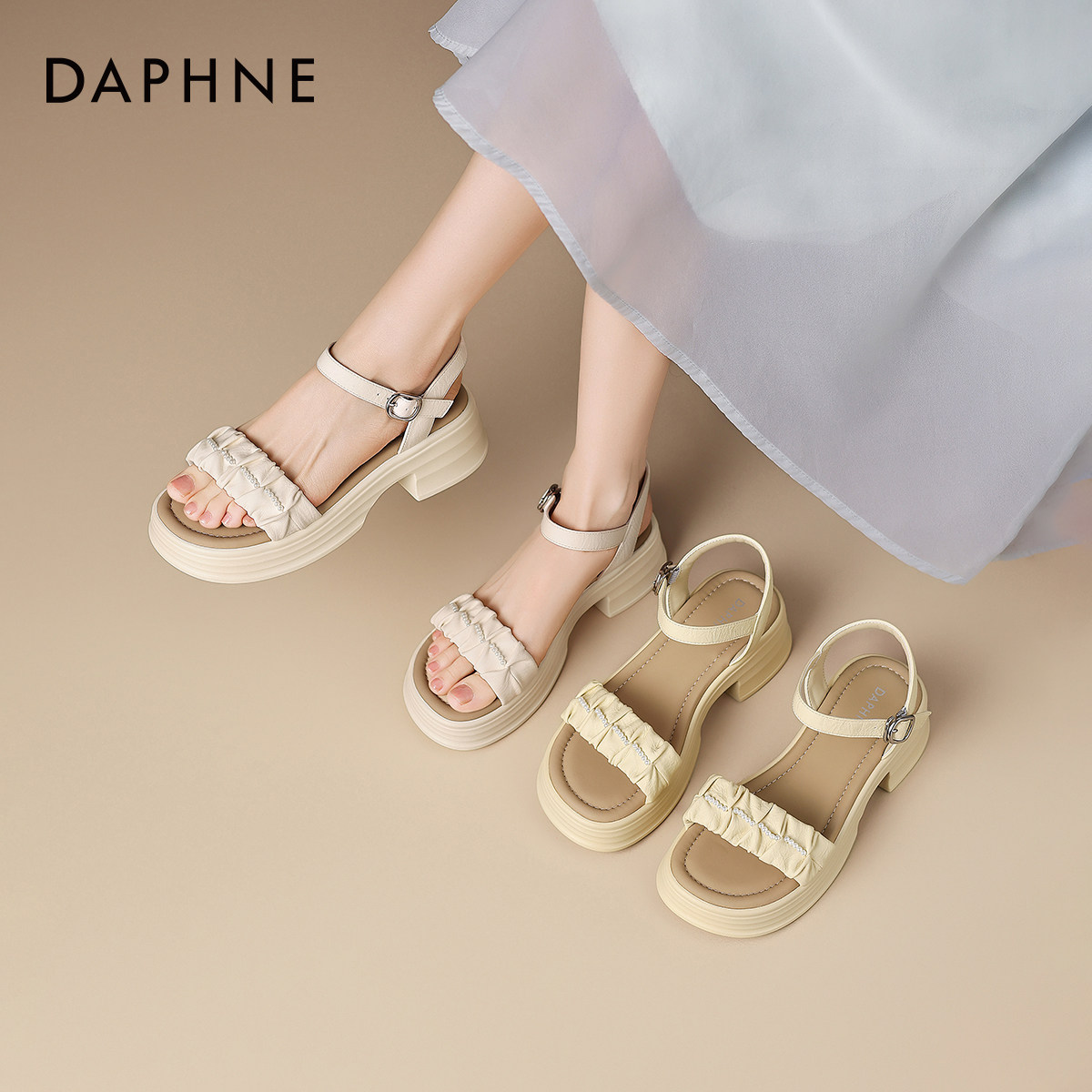 天猫达芙妮一字带凉鞋女2026新款春季厚底仙女风配裙子不累脚女鞋夏季