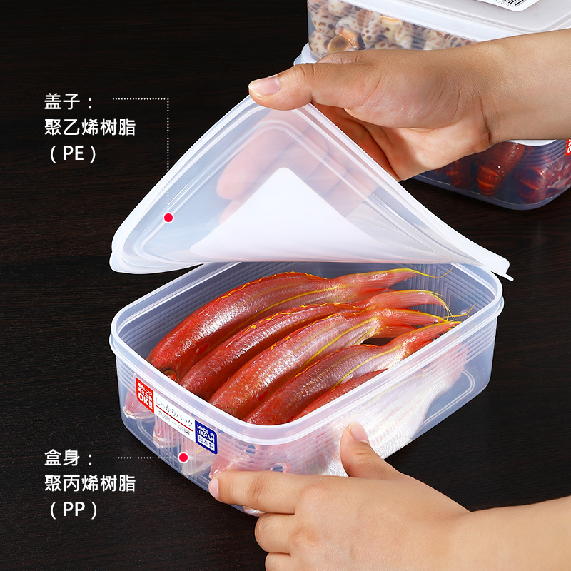 日式冰箱冷冻鱼肉沥水保鲜盒厨房分类收纳盒塑料长方形带盖冷藏盒