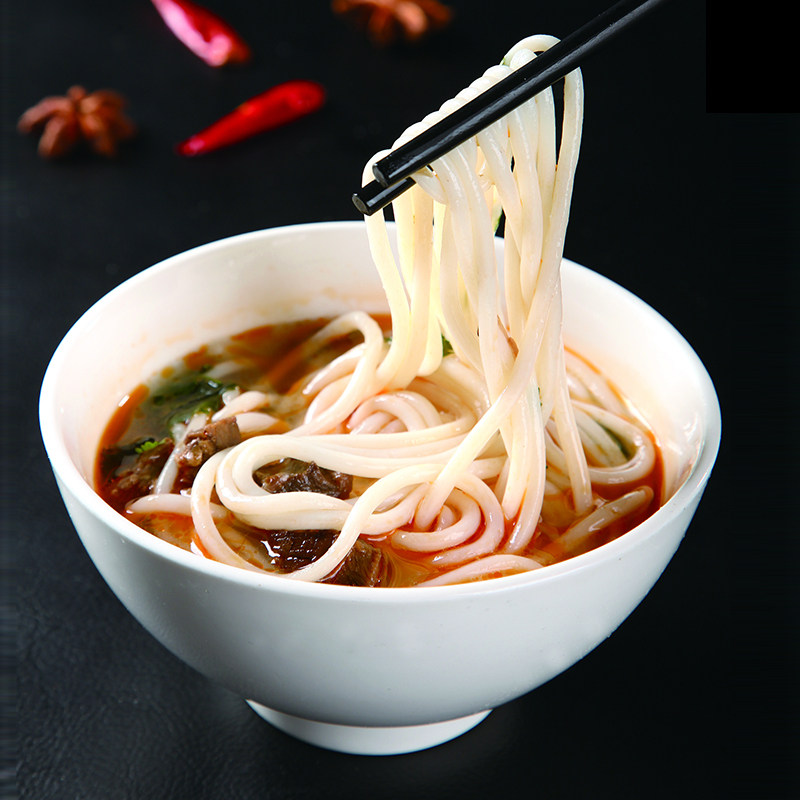 江西米粉是中国南方特色传统食品,以优质大米为原料,经浸泡、磨浆、蒸制、压榨等工艺制成,口感爽滑劲道。五丰干米粉是江西知名品牌,便于储存与运输,广泛用于家庭烹饪。除本地特色南昌拌粉外,江西米粉也常用于制作云南过桥米线、桂林米粉及螺蛳粉等各地风味小吃,适应性强。其干制形态便于远销,成为江西重要特产之一。无论是汤粉、炒粉还是凉拌,江西米粉都能完美融合调料,展现独特米香与韧性,深受全国食客喜爱,是中华粉面文化的重要组成部分。