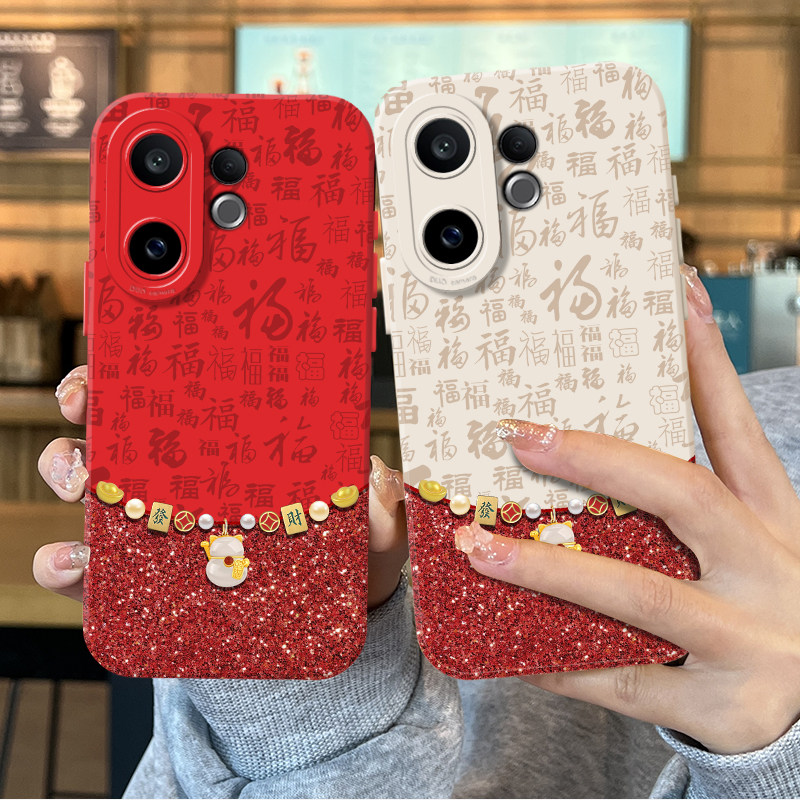 天猫百福图招财猫适用vivos30promini手机壳20pro新年s50本命年19新款18红色17情侣限定16por发财马年15外壳男女