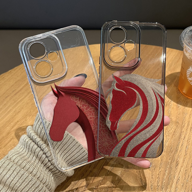 天发财小马大花布适用苹果17promax手机壳iphone16pro透明15plus新年14马年13mini红色12新款11限定x/8/xr/xs/7