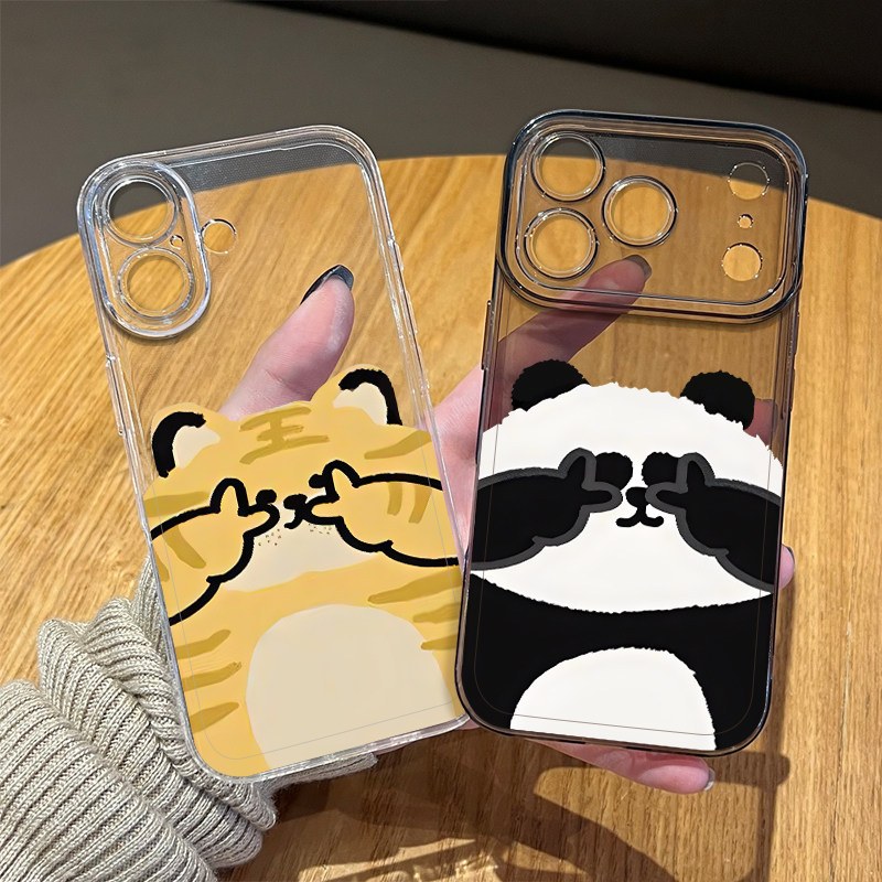 天猫比耶熊猫老虎手机壳适用苹果17promax透明iphone16pro情侣15plus搞怪14趣味13mini可爱12新款11女x/8/xr/xs/7