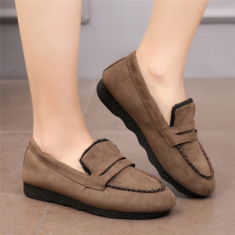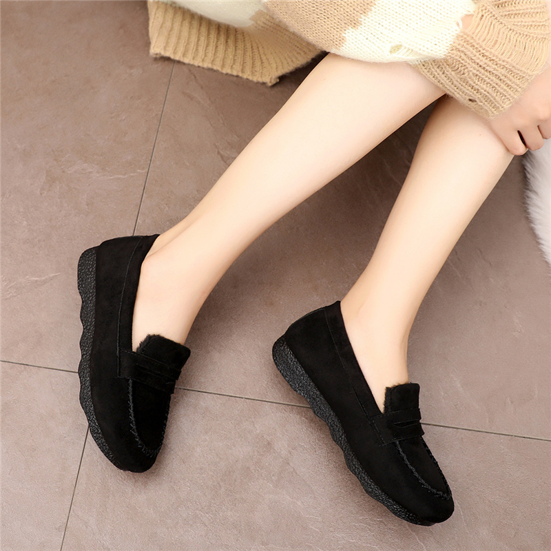 淘宝秋冬季平底鞋老北京布鞋加绒保暖女鞋棉鞋软底豆豆鞋黑色工作鞋女