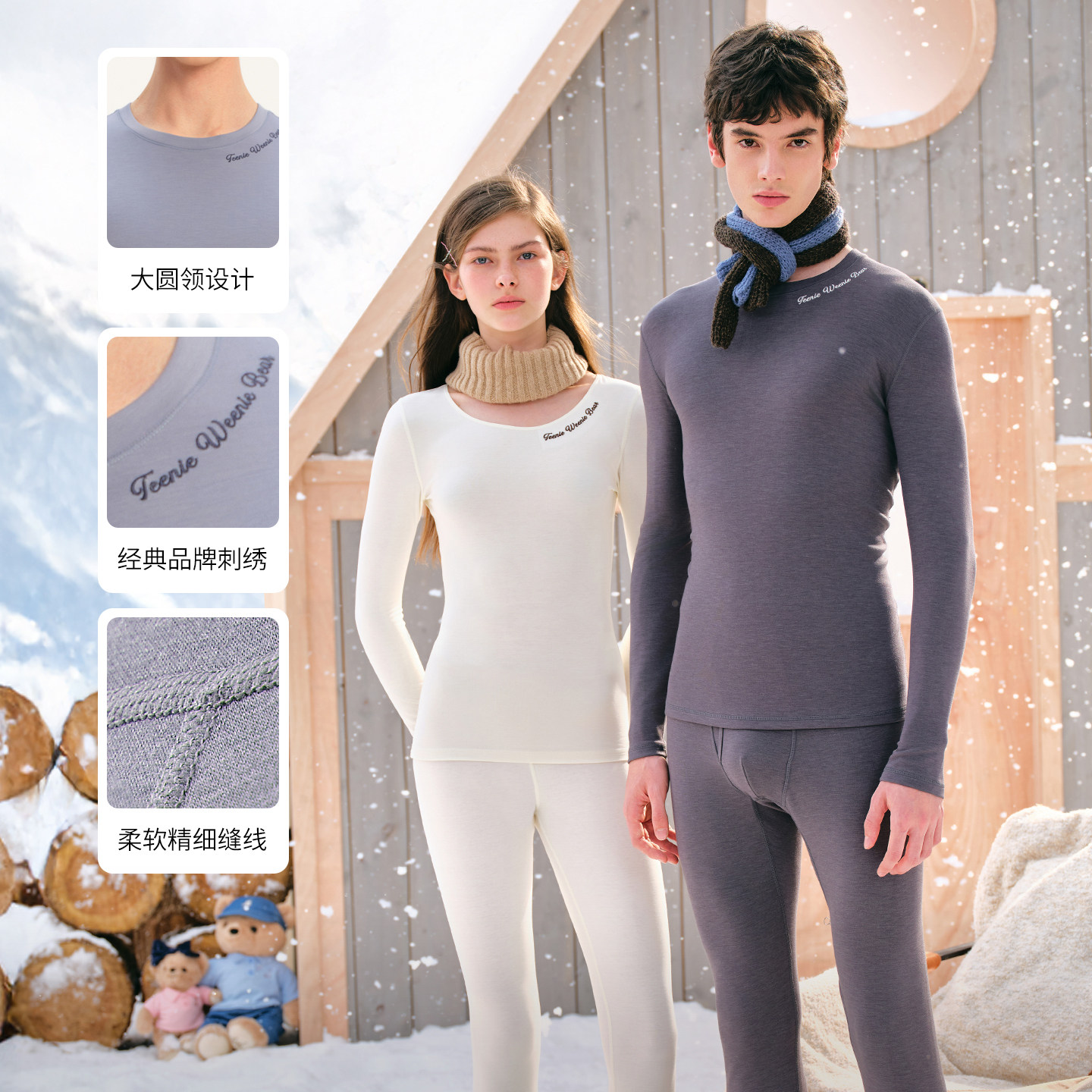 天猫TeenieWeenie小熊加绒加厚发热保暖内衣套装女士肌衣底秋衣秋裤男