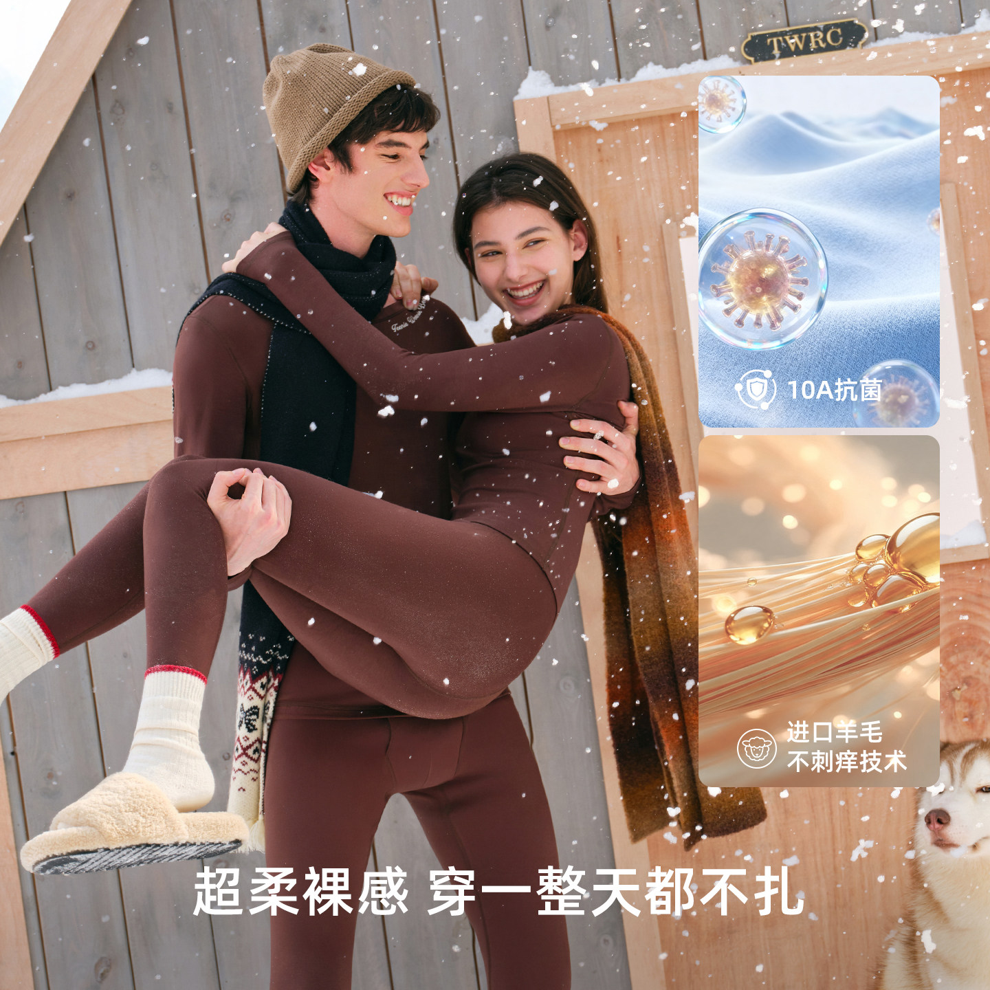 淘100%美利奴羊毛男女士内衣贴身套装保暖速干塑身打底内衣秋衣秋裤