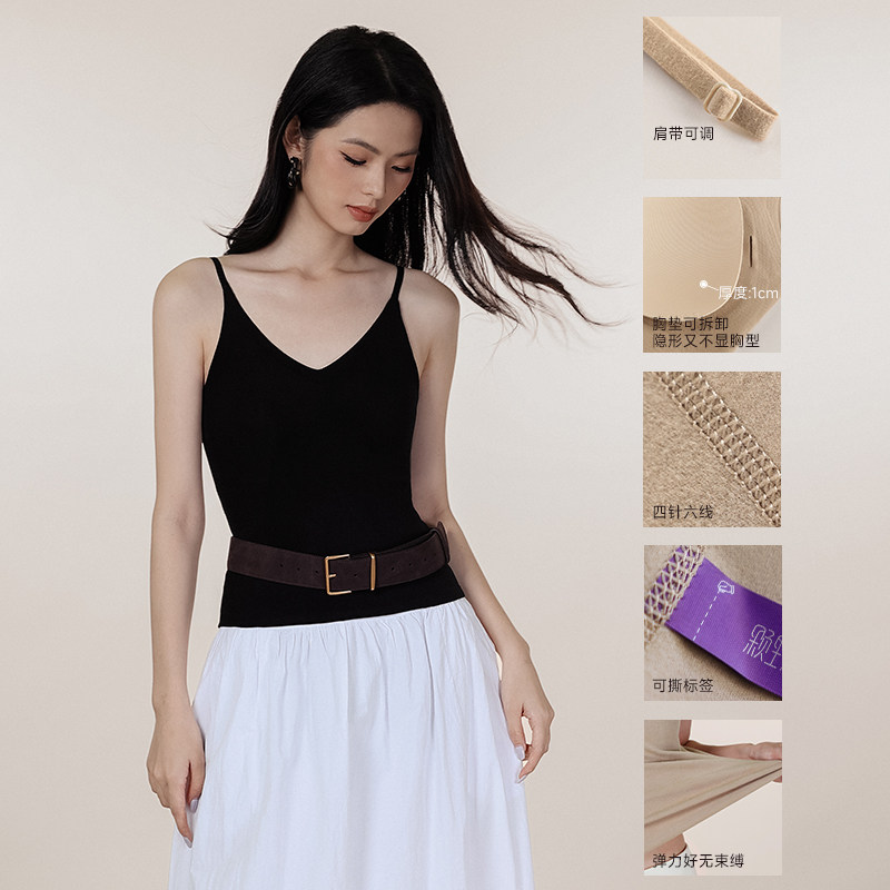 天草本初色粉底液吊带保暖背心女带胸垫内搭隐形无痕打底外穿秋冬季