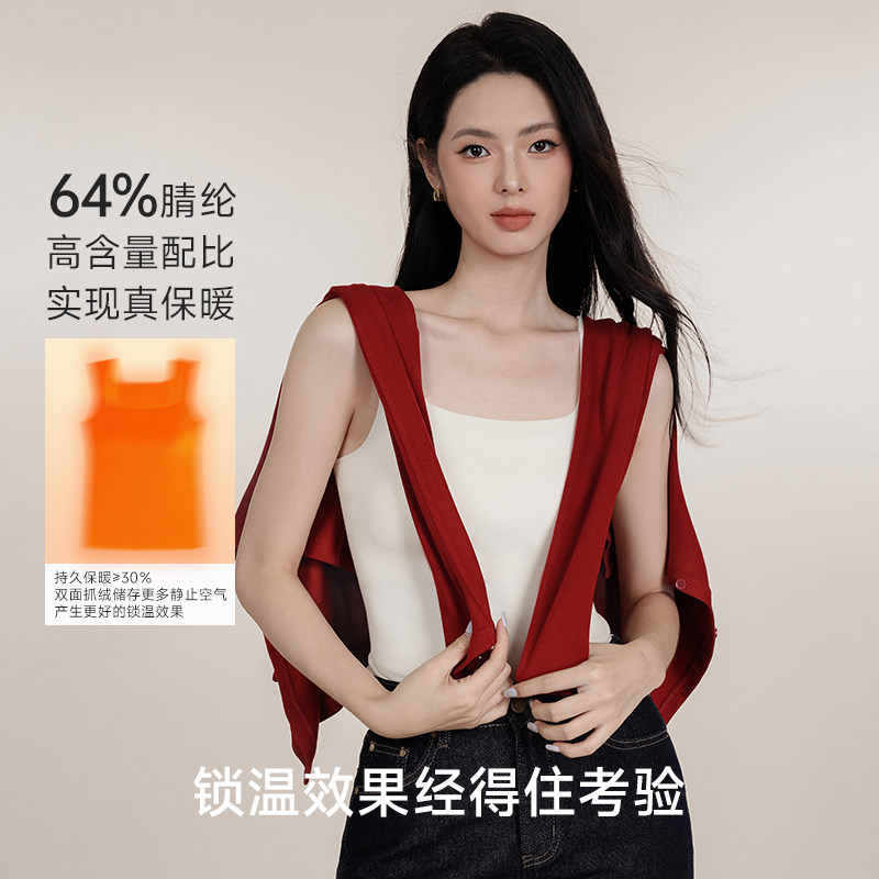 天爱美丽磨毛保暖背心秋冬新款含羊毛带胸垫免穿内衣打底防寒内搭女