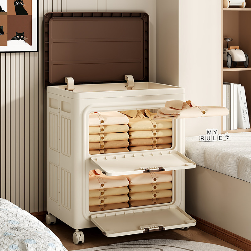 这款家用大容量带轮收纳柜,专为客厅、卧室及宝宝房设计,集衣物、玩具、杂物整理于一体。采用坚固环保材质,结构稳固,承重力强,多层分隔设计让收纳井然有序。底部配备静音万向轮,移动轻松省力,不伤地板,可随时调整位置。柜体可折叠设计,不用时节省空间,安装简便无需工具。特别适合收纳宝宝衣物、玩具、绘本等,保持家居整洁美观。简约百搭外观,适配多种装修风格,是提升居家收纳效率的理想选择,让空间更宽敞,生活更舒心。