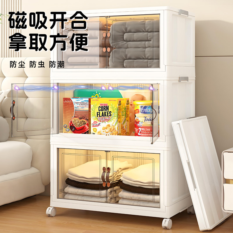 坂崎收纳箱家用衣服被子收纳柜平移门客厅零食玩具储物柜折叠箱
