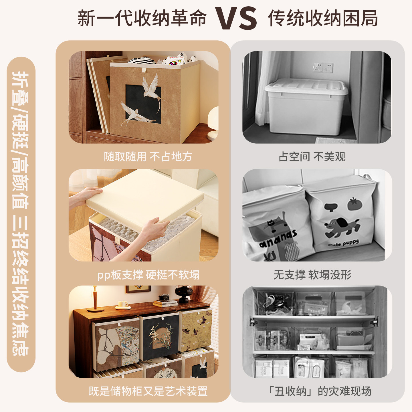 淘中古风折叠收纳箱衣物被子大容量衣柜床头柜前开式带轮整理储物柜