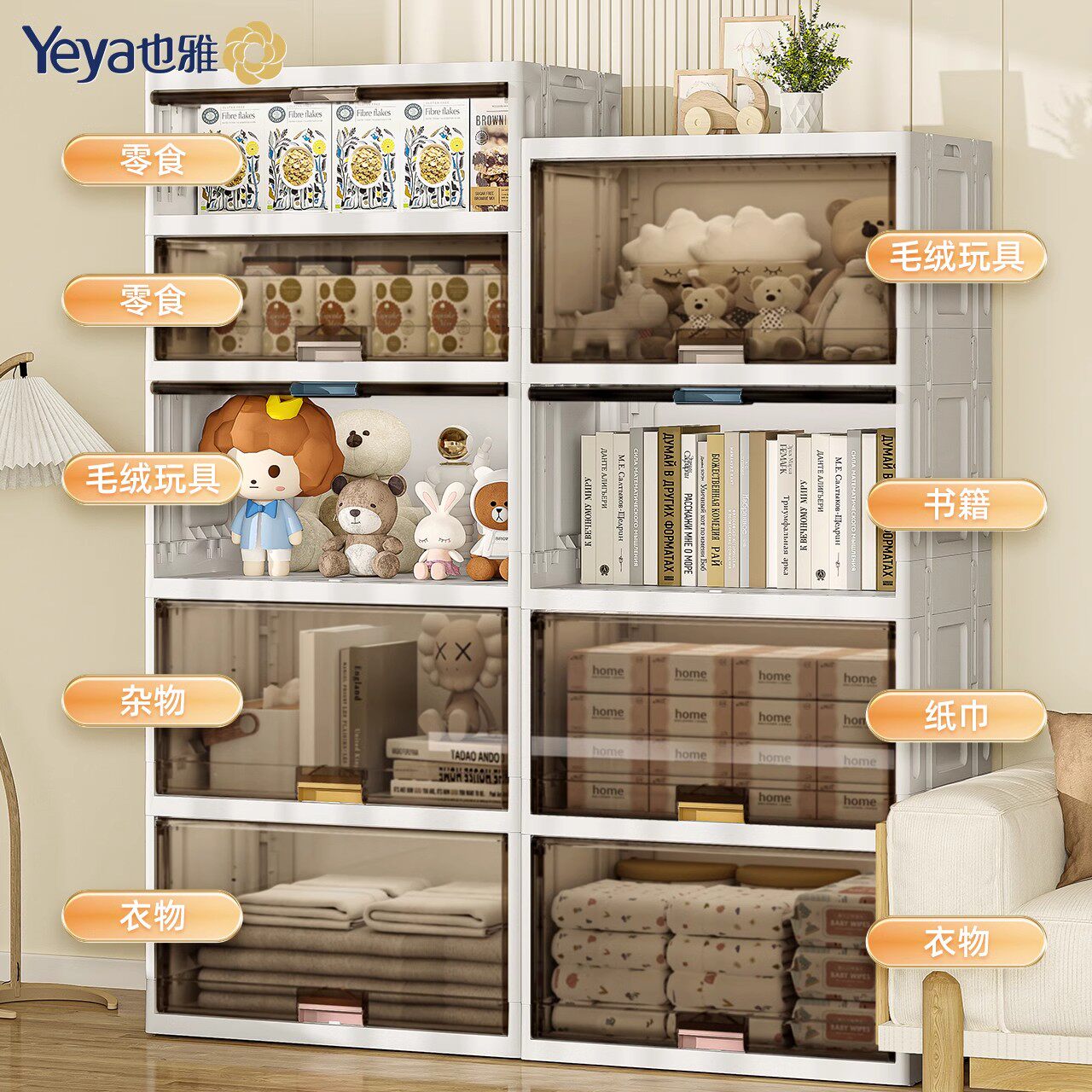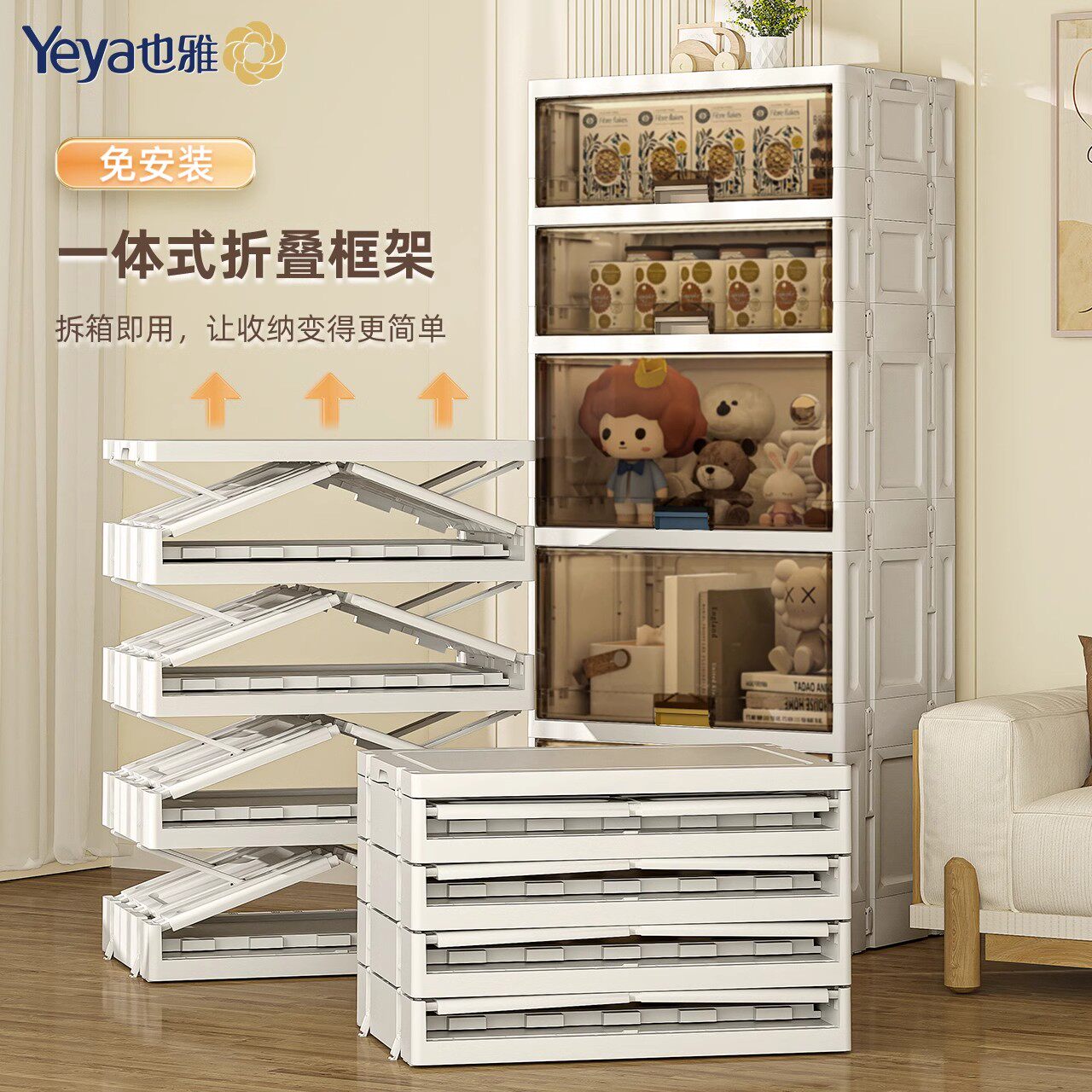 淘宝也雅收纳柜子储物柜家用多层置物柜折叠塑料衣柜衣服杂物置物架