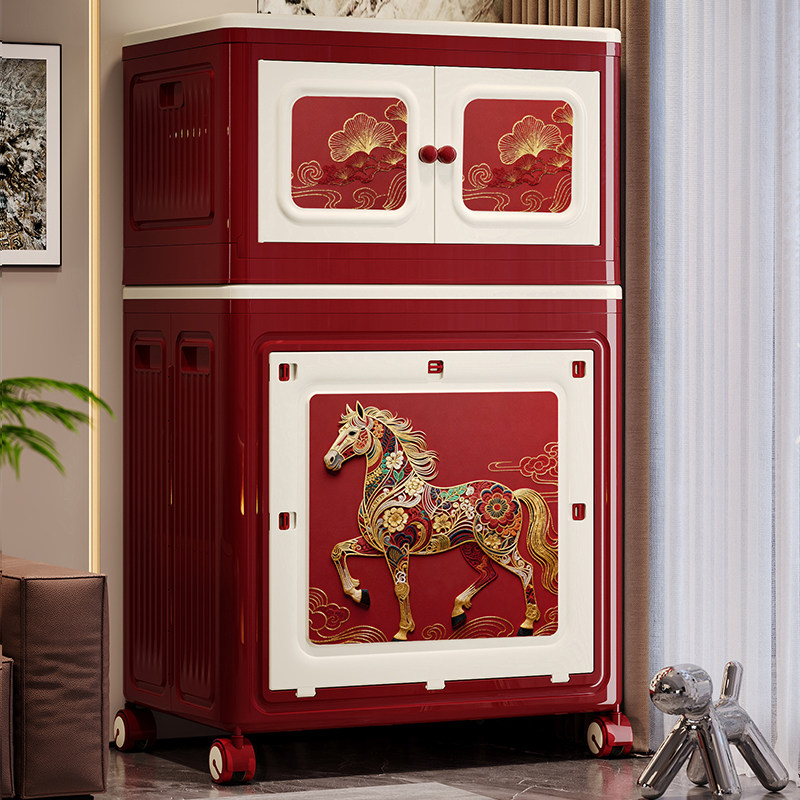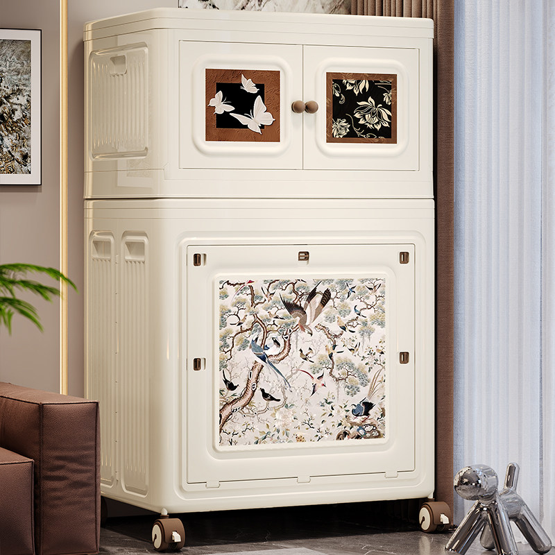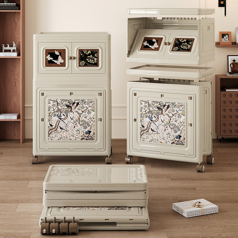 天猫中古风收纳柜多层大容量带轮收纳箱卧室客厅可折叠衣服被子储物柜