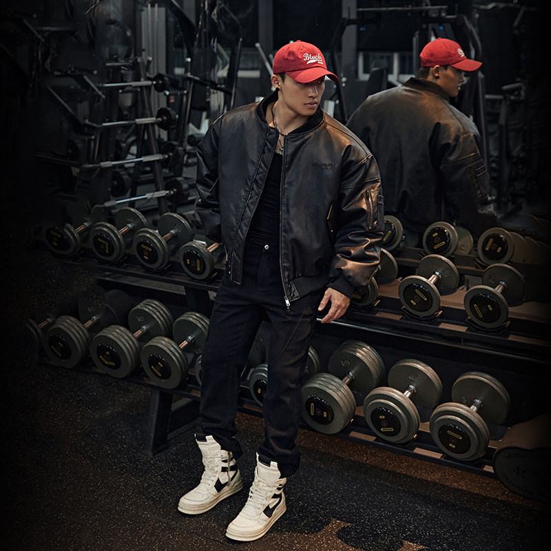 杰克琼斯男装冬季皮衣2025年新款翻领立体刺绣logo长袖外套
