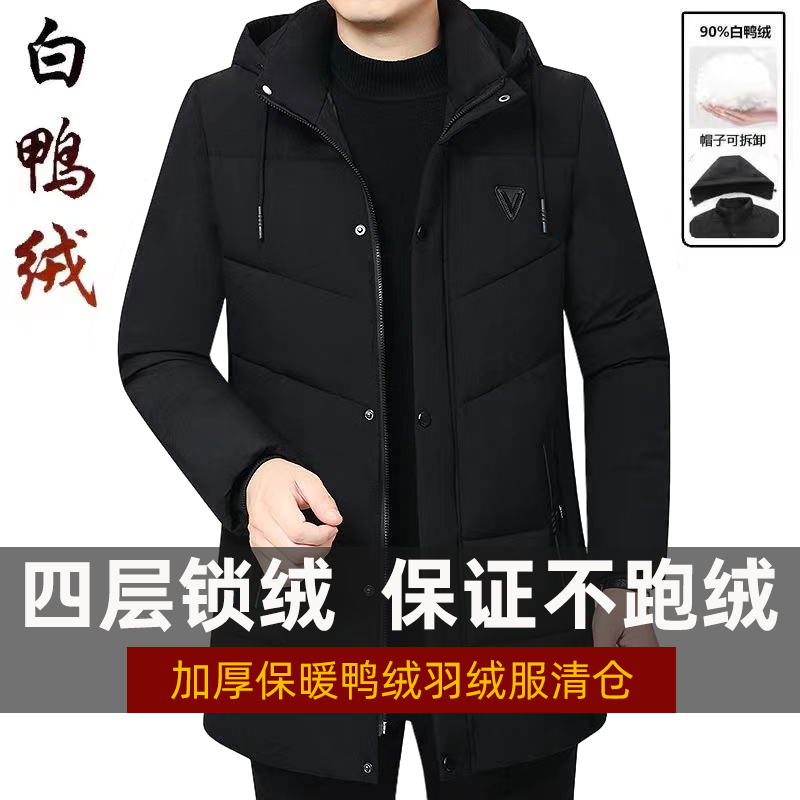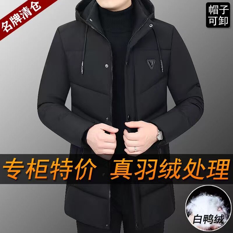 淘宝高档品牌新款男士羽绒服男冬季2023反季连帽加绒加厚中长款爸爸外