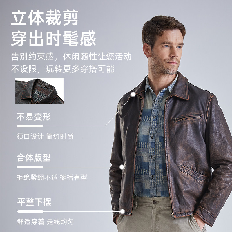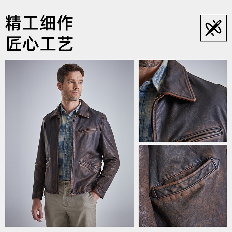 天猫MCS男装源自万宝路经典1930S真皮皮衣底特律做旧牛皮夹克外套男