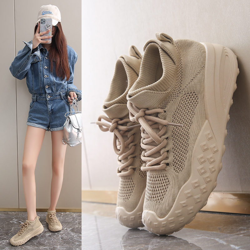 淘德训鞋女2025春季新款时尚爆款休闲鞋软底防滑运动单鞋厚底阿甘鞋