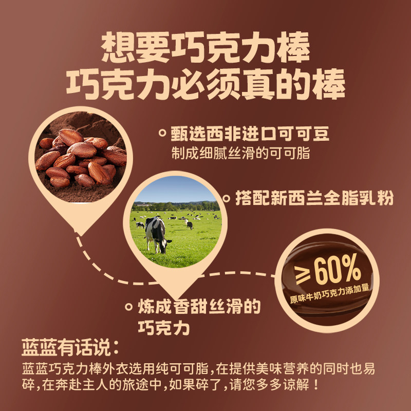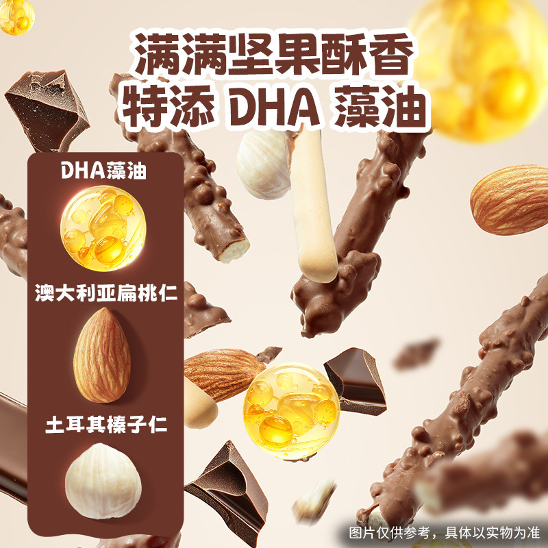 天猫小鹿蓝蓝坚果巧克力棒0蔗糖纯可可脂牛奶饼干宝宝磨牙年货礼糖果