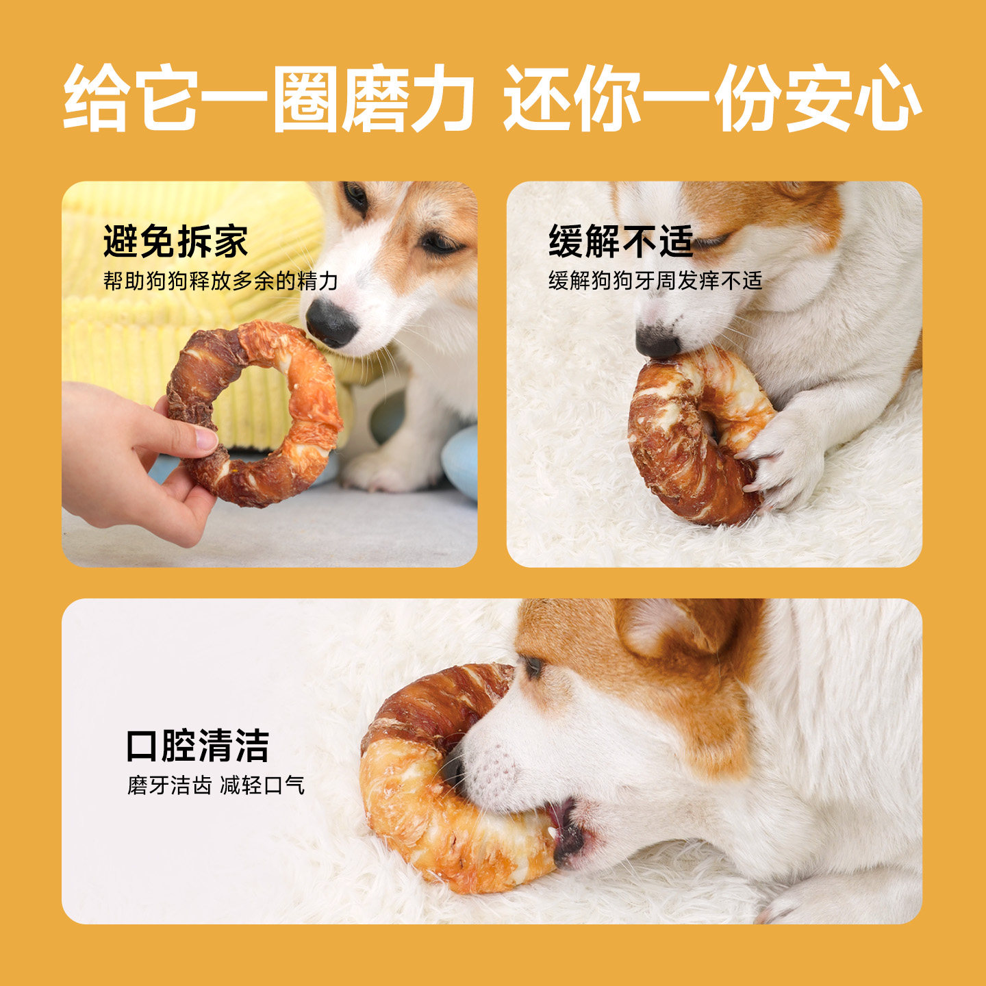 天猫鲜粮说磨力圈狗零食牛皮圈宠物磨牙棒幼犬大小型犬清新口气甜甜圈