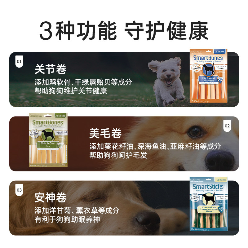 天猫SmartBones狗狗磨牙棒狗咬胶幼犬骨头金毛零食美毛营养洁齿卷咬棒