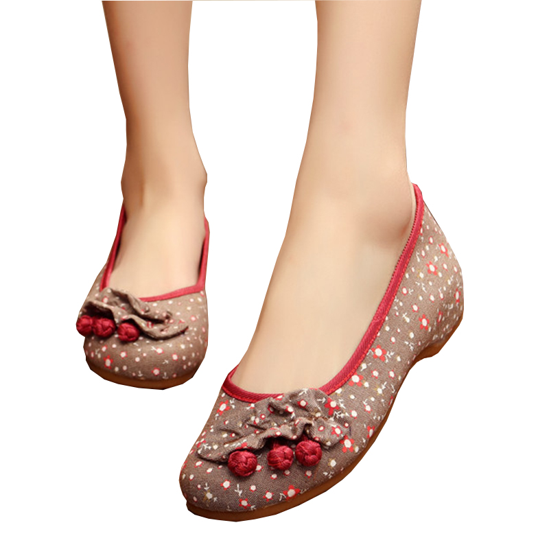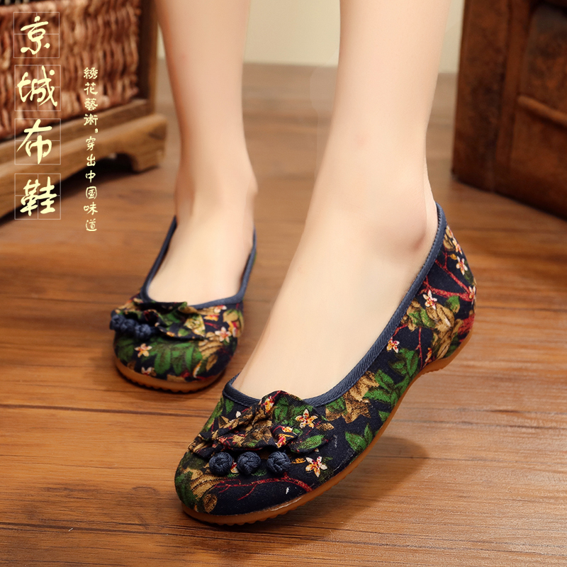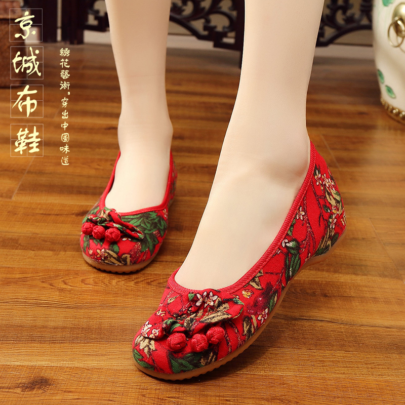 淘宝【京城布鞋】老北京民族风绣花内增高牛筋软底妈妈工作花布女单鞋