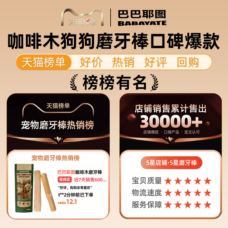 天猫咖啡木磨牙棒狗狗宠物洁牙解闷防拆家玩具耐咬金毛边牧柯基专用
