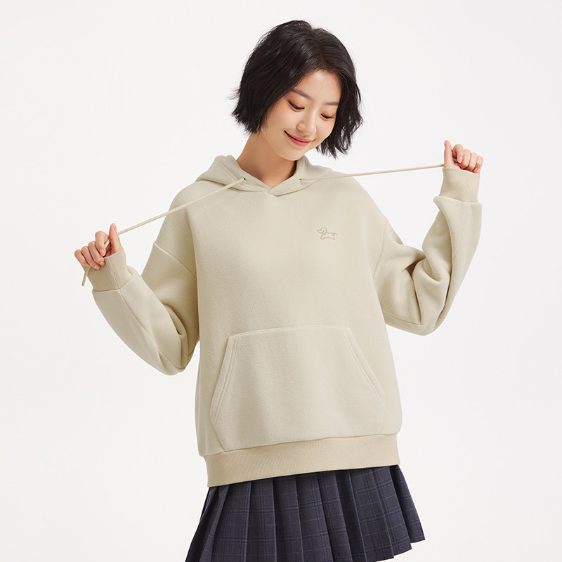 2025年冬季新款热风女士毛绒卫衣,采用高品质双面摇粒绒面料,触感柔软细腻,保暖性能卓越,轻松应对寒冷天气。连帽设计搭配宽松版型,兼具时尚与舒适,轻松打造慵懒冬日造型。加绒内里细腻亲肤,锁温蓄热,久穿不易变形起球。前幅大容量袋鼠兜,实用又贴心,可暖手置物两不误。多色可选,百搭实穿,无论是日常通勤还是休闲出行都能轻松驾驭。热风匠心工艺,注重细节与品质,让温暖与时尚在寒冬中完美融合,是冬季衣橱不可或缺的保暖单品。