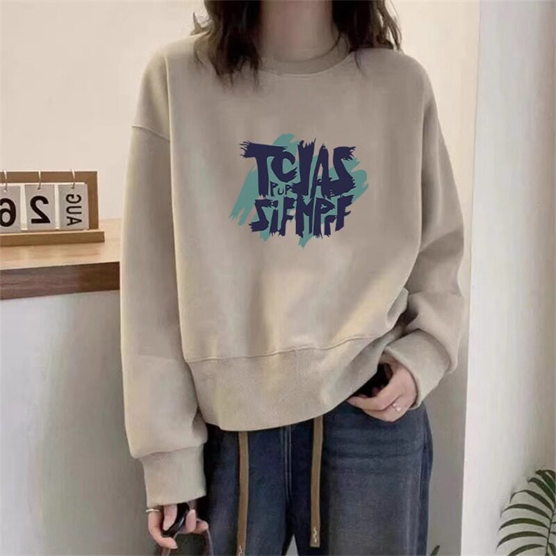 淘宝山东即墨纯棉卫衣女秋冬季时尚印花宽松显瘦小众加绒加厚百搭上衣