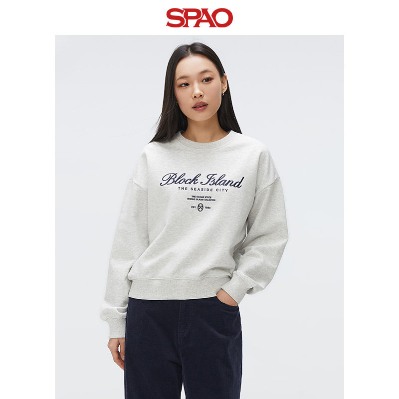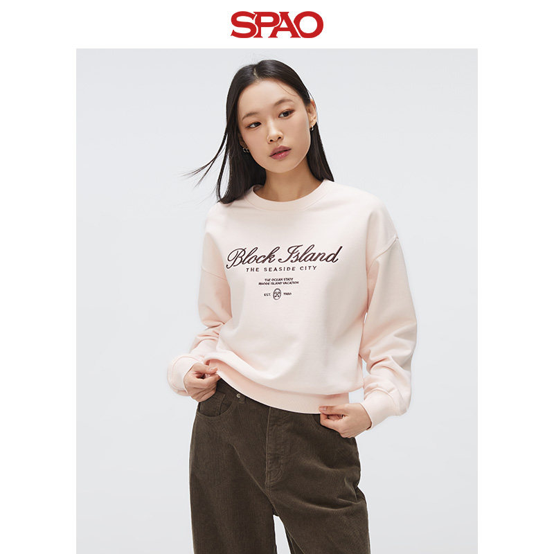 天猫SPAO韩国同款25年春秋女士时尚字母刺绣圆领卫衣
