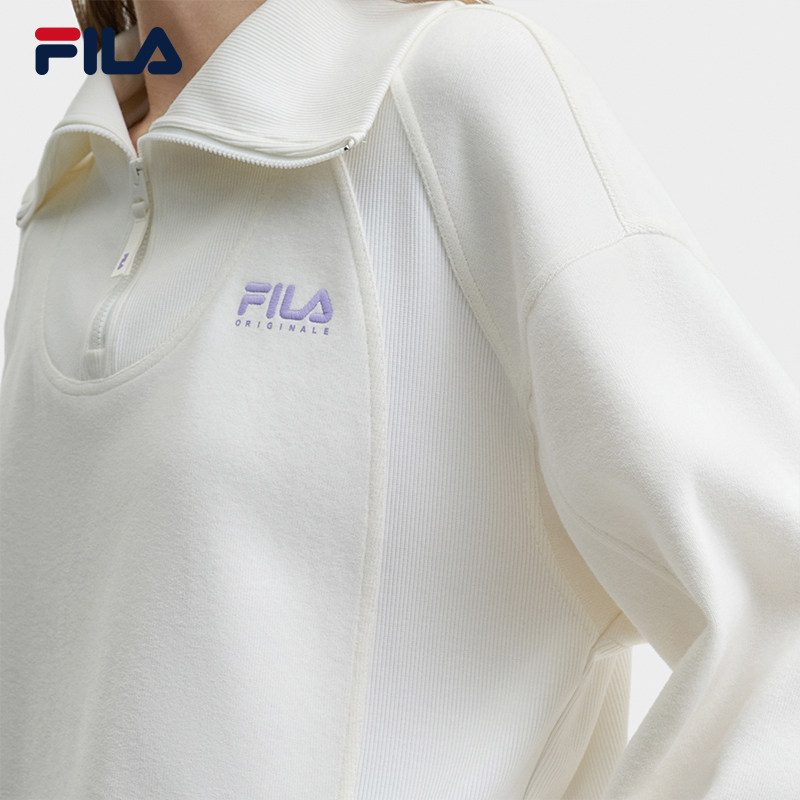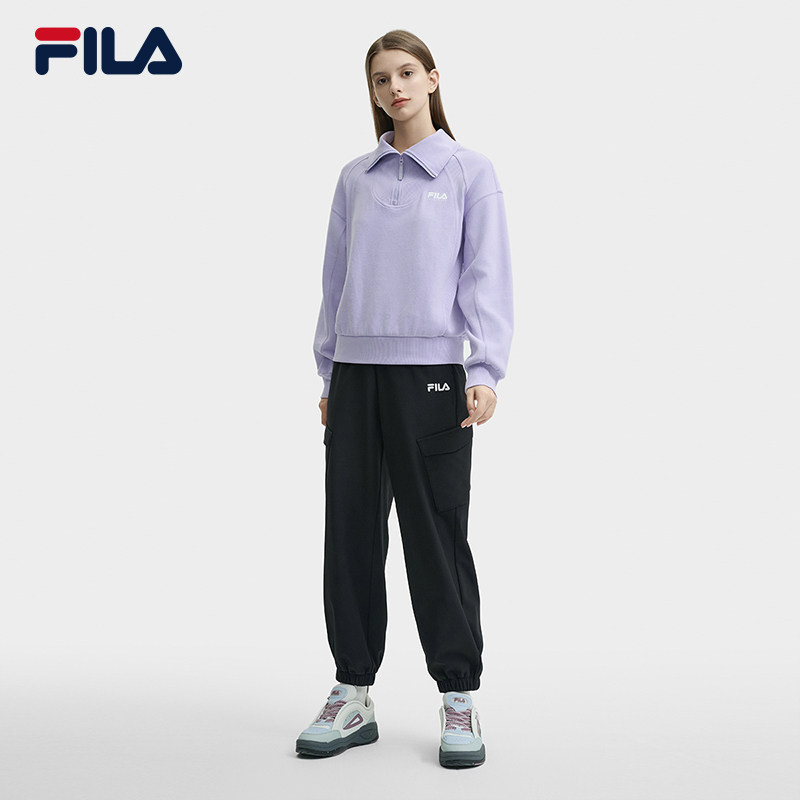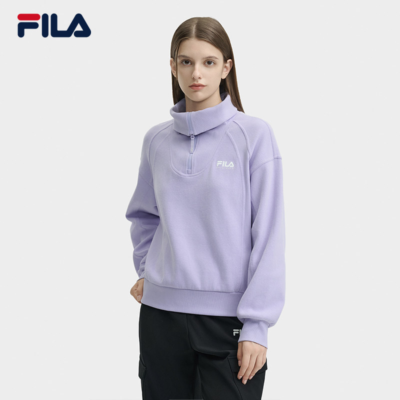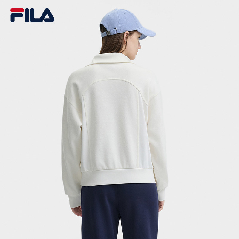 天猫FILA 斐乐官方女子套头卫衣2024冬新款时尚休闲宽松翻领针织上衣