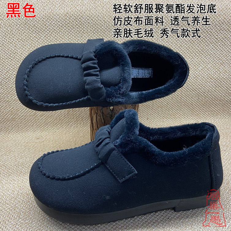 天老北京布鞋女冬季加绒保暖软底中老年豆豆棉鞋休闲女式懒人毛毛鞋