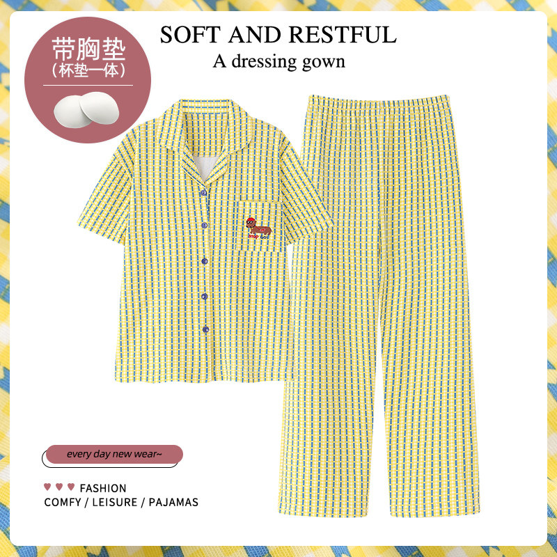 天猫末里末【柠黄格格】2026新款春夏情侣短袖纯棉透气抑菌翻领睡衣女